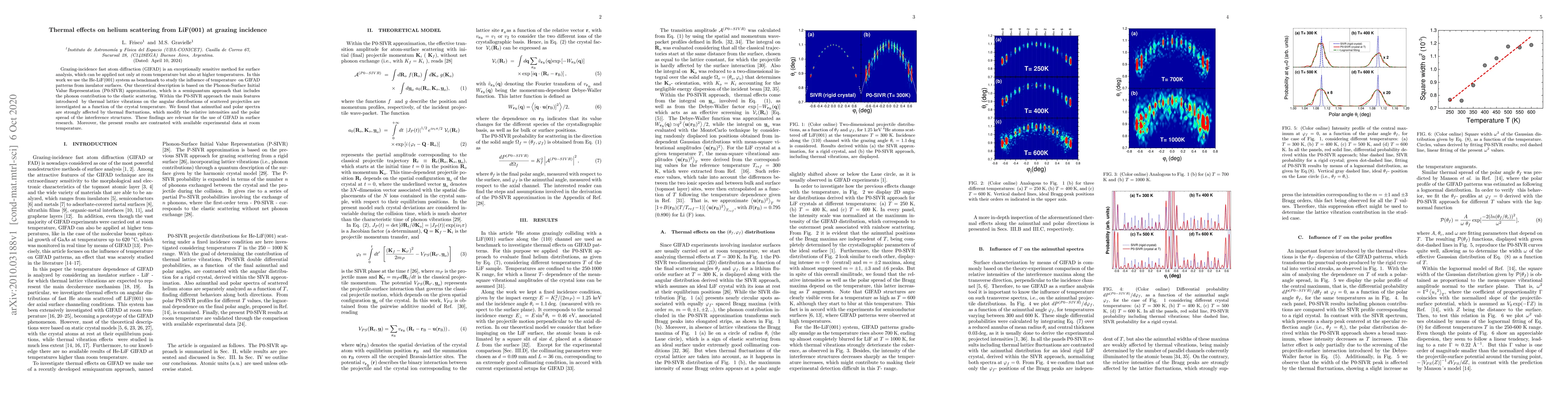 This paper investigates the thermal effects on helium scattering from LiF(001) using grazing-incidence fast atom diffraction (GIFAD) and the Phonon-Surface Initial Value Representation (P0-SIVR) approach. It finds that thermal lattice vibrations significantly alter the angular distributions of scattered helium atoms, impacting relative intensities and interference structures.