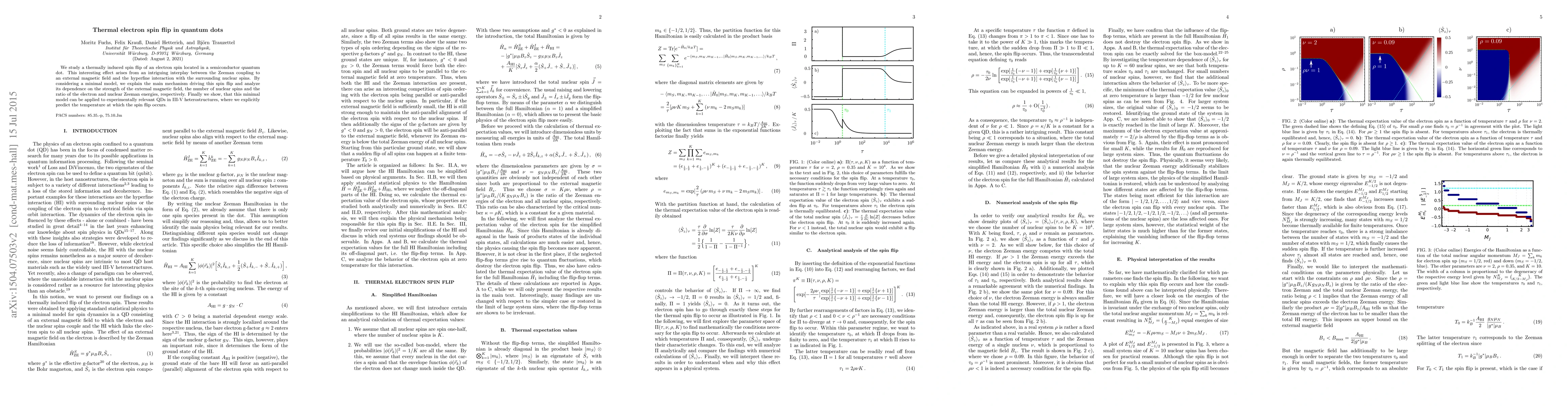 This paper investigates the thermally induced spin flip in semiconductor quantum dots, driven by the interplay between Zeeman coupling and hyperfine interaction with nuclear spins. The study explains the underlying mechanism and predicts the temperature for spin flip occurrence in III-V heterostructures.