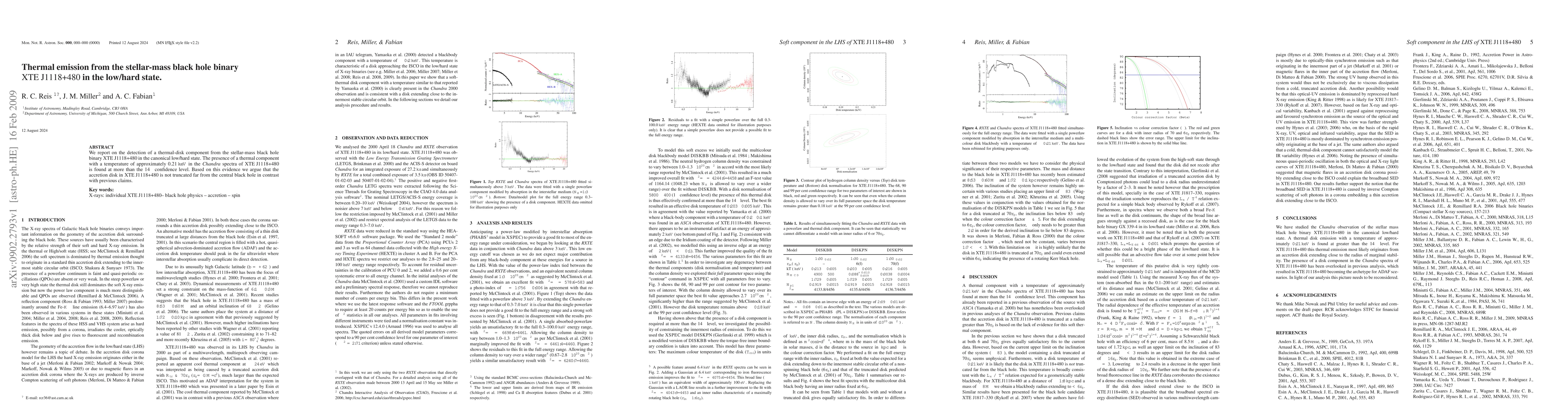 Researchers detected a thermal-disk component in the stellar-mass black hole binary XTE J1118+480, indicating an untruncated accretion disk unlike previous claims. The discovery was made using Chandra spectra with over 14 sigma confidence level.