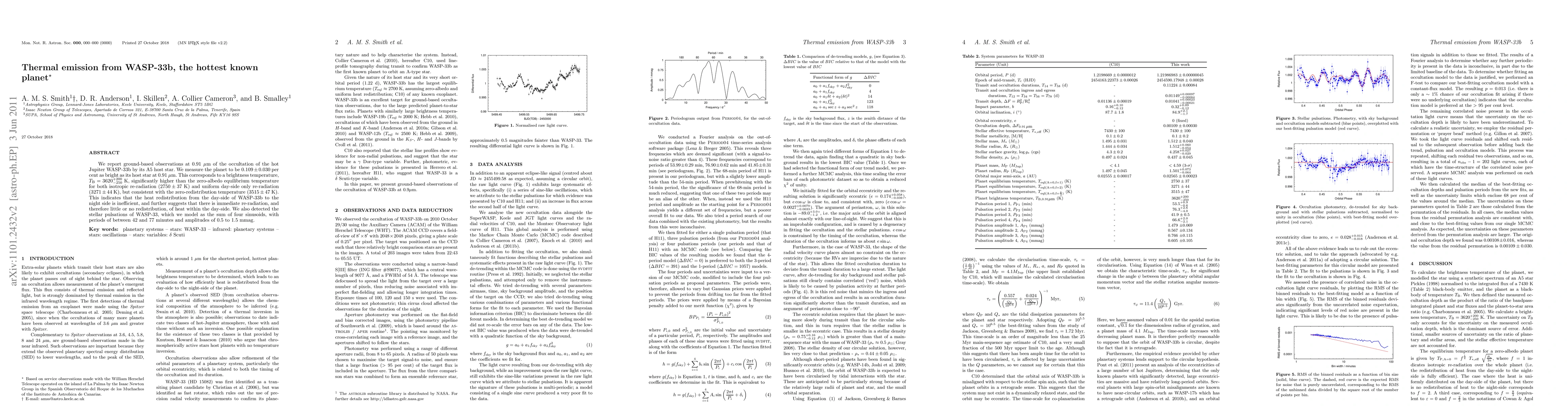 This study reports ground-based observations of the hot Jupiter WASP-33b, revealing its thermal emission at 0.91 microns, indicating inefficient heat redistribution from the day-side to the night-side. The observed brightness temperature of 3620 K is higher than expected equilibrium temperatures, suggesting minimal redistribution.