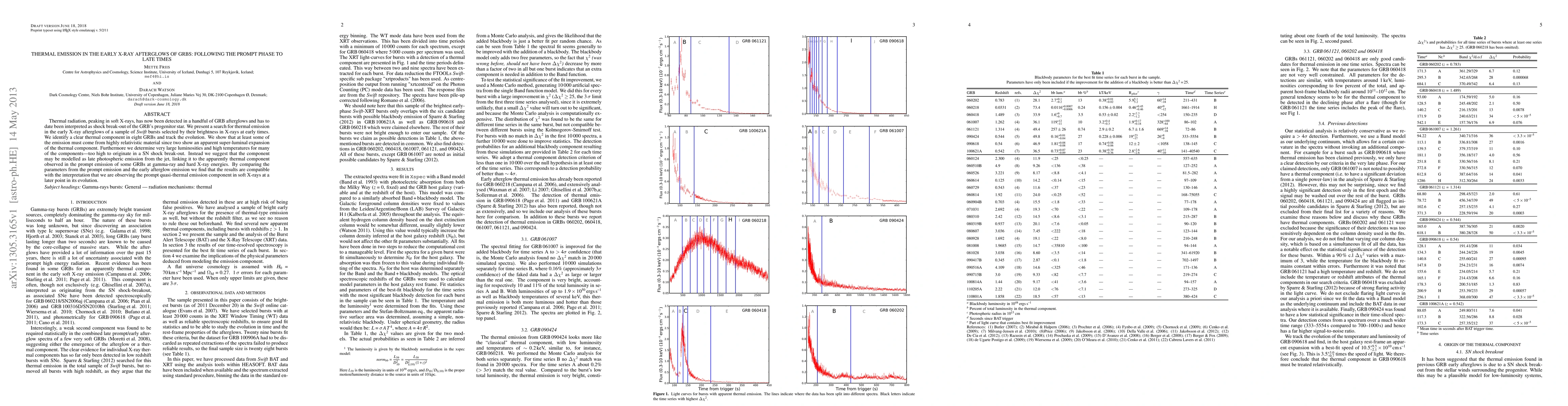 This paper identifies thermal emission in the early X-ray afterglows of several GRBs, suggesting it originates from highly relativistic material in the jet rather than a supernova shock. The observed thermal component's evolution and properties support the interpretation of late photospheric emission from the GRB jet.