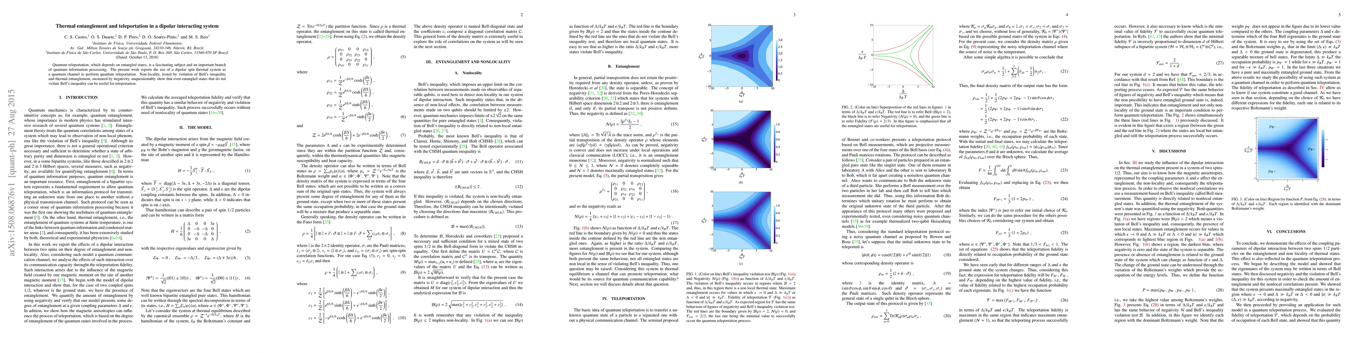 This paper explores the use of a dipolar spin thermal system for quantum teleportation, demonstrating that thermal entanglement and non-locality, evidenced by Bell's inequality violation, can facilitate teleportation even in states that do not traditionally violate Bell's inequality.
