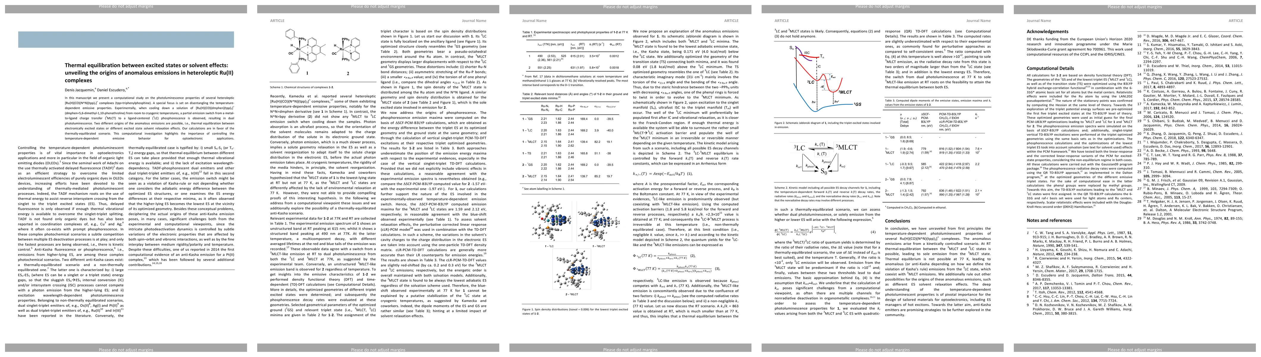 Researchers study heteroleptic Ru(II) complexes and find that cooling a solution leads to dual photoluminescence due to thermal equilibration between excited states or solvent effects.
