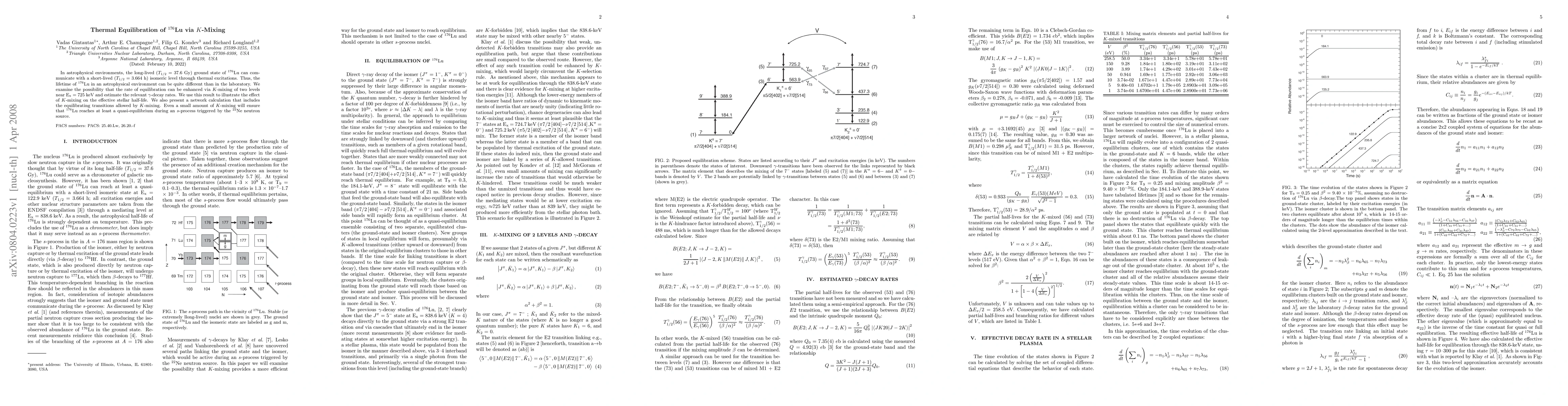 The paper presents a detailed analysis of K-mixing effects on 176-Lu equilibration, providing estimated gamma-decay rates and partial half-lives for K-mixed transitions.