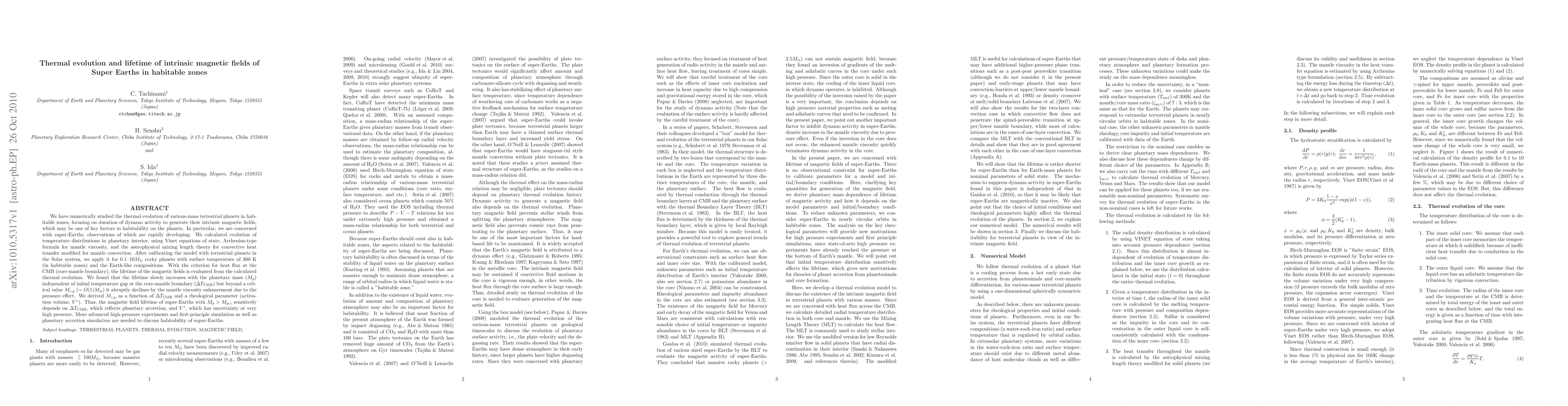 This research investigates the thermal evolution of super-Earths in habitable zones, focusing on the duration of dynamo activity for intrinsic magnetic field generation. The study finds that magnetic field lifetime increases with planetary mass but declines sharply beyond a critical mass due to increased mantle viscosity, influenced by the initial temperature gap and activation volume. Further high-pressure experiments and simulations are needed to better understand super-Earth habitability.
