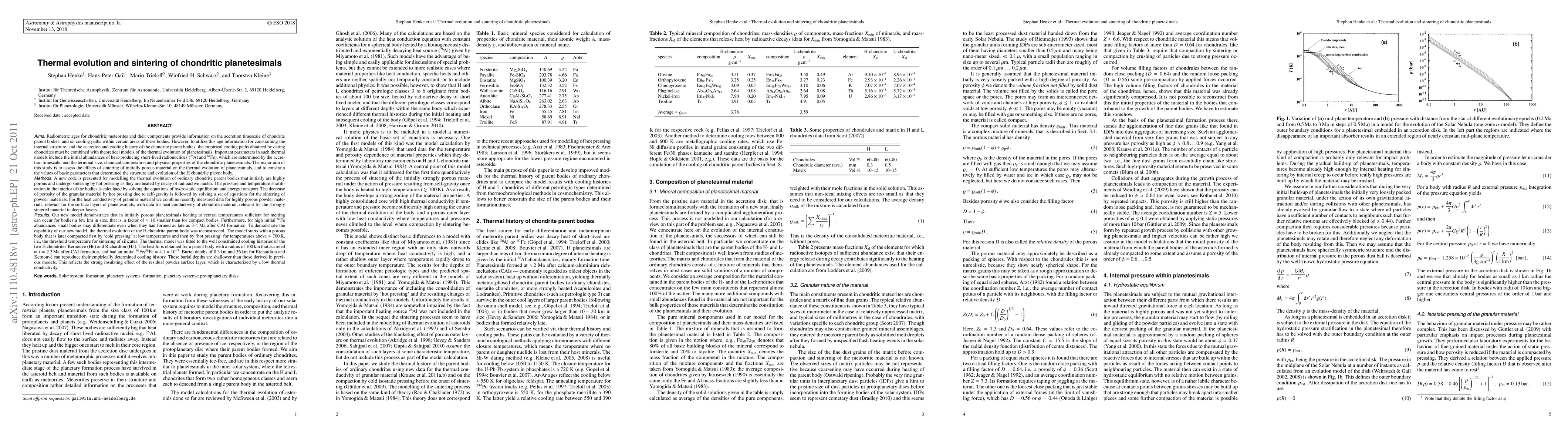 This study models the thermal evolution of chondritic planetesimals, focusing on the effects of sintering on initially porous material. A new computational code is developed to simulate the pressure and temperature stratification, incorporating data for both highly porous and sintered granular material. The model reconstructs the thermal history of the H chondrite parent body, fitting it to the cooling histories of the H6 chondrite Kernouve and H5 chondrite Richardton.
