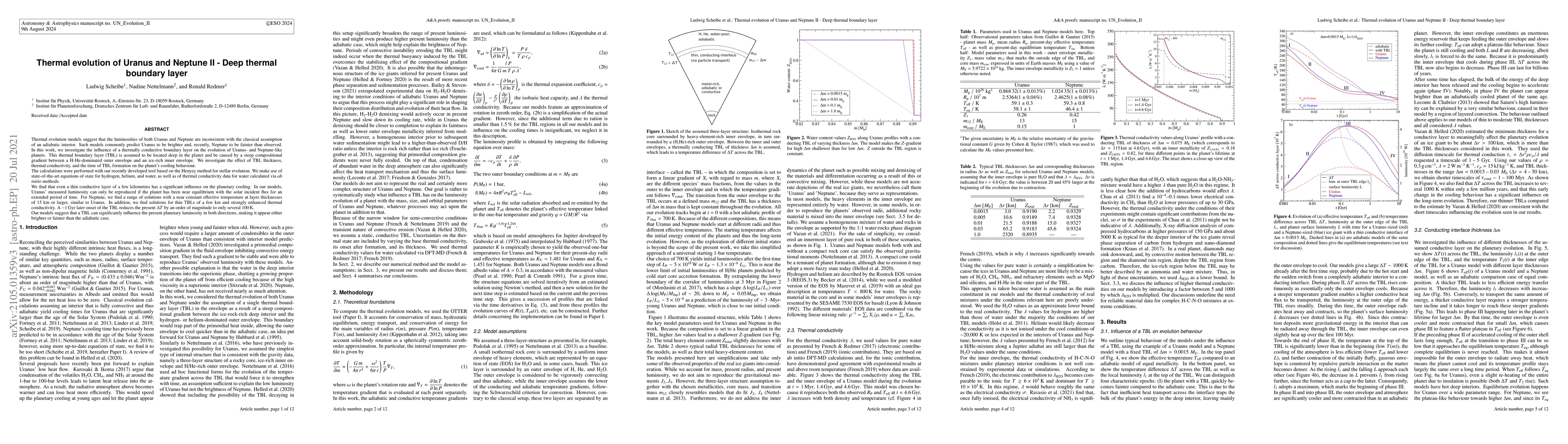 The research investigates the influence of a thermally conductive boundary layer (TBL) on the thermal evolution of Uranus and Neptune using a tool based on the Henyey method for stellar evolution, incorporating state-of-the-art equations of state and thermal conductivity data.