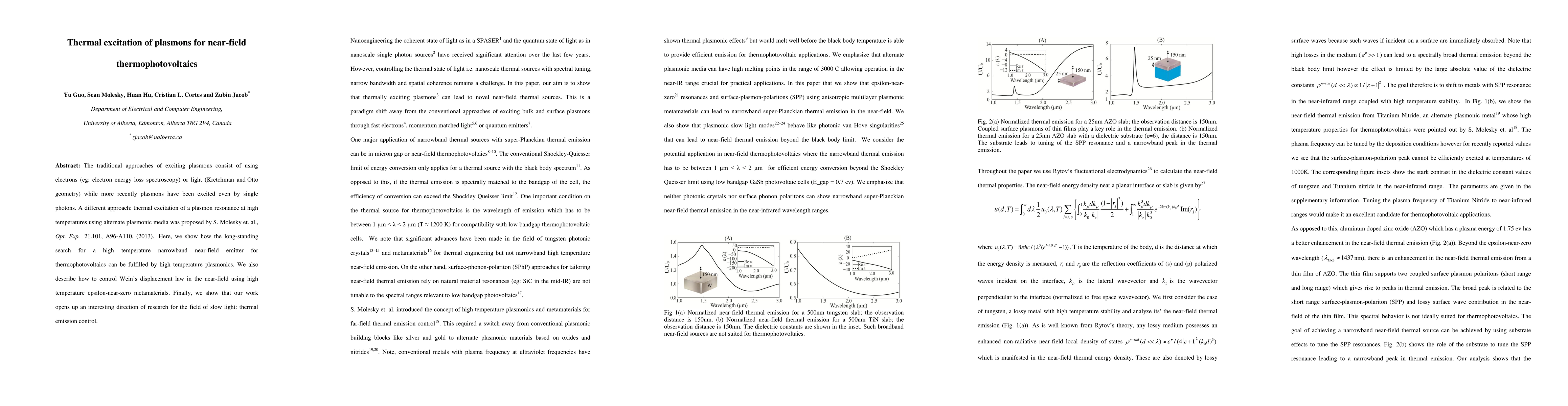 This paper explores the thermal excitation of plasmons at high temperatures using epsilon-near-zero metamaterials to achieve a narrow band near-field emitter for thermophotovoltaics, thereby controlling Wein's displacement law and opening new avenues for research in thermal emission control.
