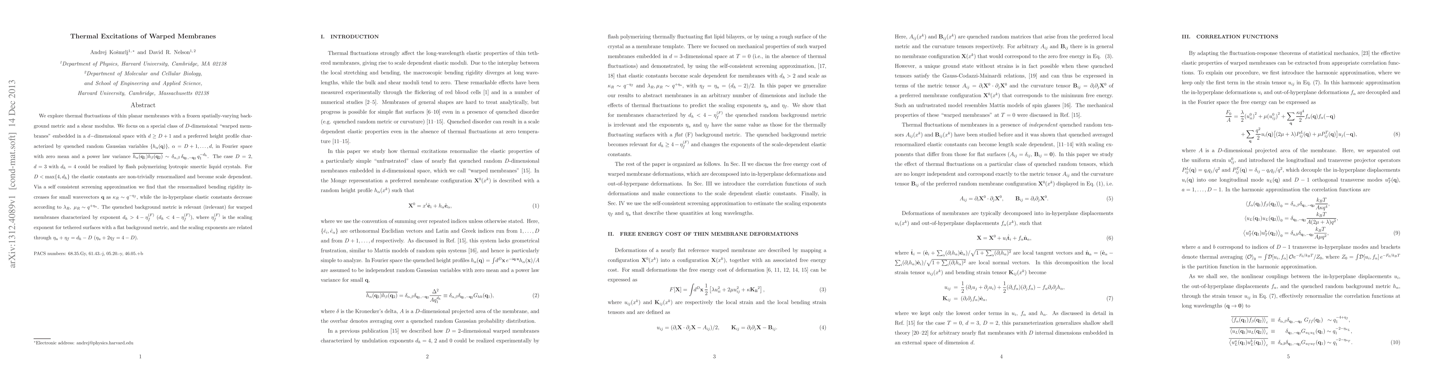 This research investigates thermal fluctuations in warped membranes with varying spatial metrics and shear modulus. Utilizing a self-consistent screening approximation, it finds that elastic constants become scale-dependent for certain dimensions, with bending rigidity increasing and in-plane elastic constants decreasing as power-law functions of wavevector. The quenched background metric's relevance is determined by specific scaling exponents, with implications for materials like flash-polymerized smectic liquid crystels.