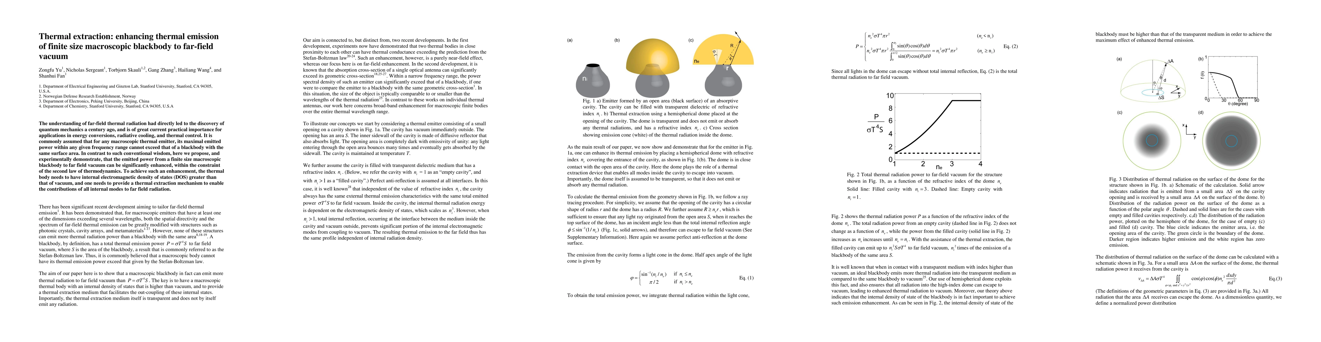 This paper proposes and experimentally demonstrates a method to significantly enhance the thermal emission from a finite size macroscopic blackbody to far-field vacuum, challenging the conventional assumption that no macroscopic thermal emitter can exceed a blackbody's emitted power. The enhancement is achieved by utilizing a thermal extraction mechanism that leverages an internal electromagnetic density of states greater than that of vacuum.