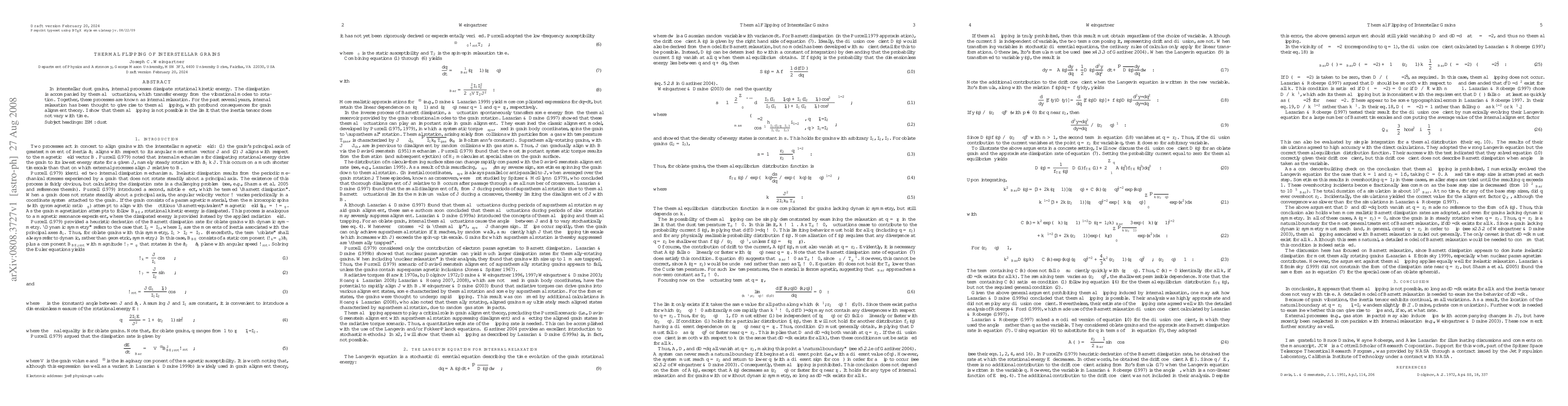 This paper argues that thermal flipping, a process previously believed to result from internal relaxation in interstellar dust grains, is not feasible when the inertia tensor remains constant over time. This challenges existing grain alignment theories.
