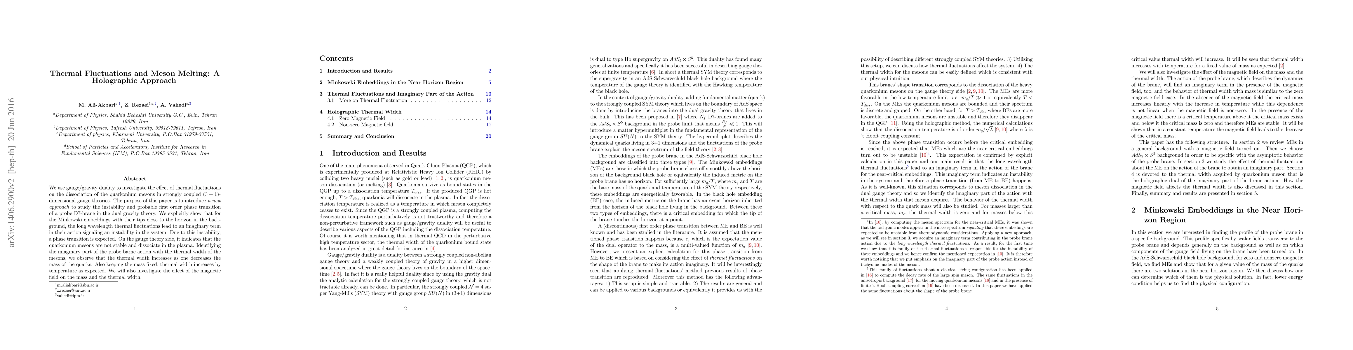 We use gauge/gravity duality to investigate the effect of thermal fluctuations on the dissociation of the quarkonium meson in strongly coupled $(3+1)$-dimensional gauge theories. This is done by studying the instability and probable first order phase transition of a probe D7-brane in the dual gravity theory. We explicitly show that for the Minkowski embeddings with their tips close to the horizon in the background, the long wavelength thermal fluctuations lead to an imaginary term in their action signaling an instability in the system. Due to this instability, a phase transition is expected. On the gauge theory side, it indicates that the quarkonium mesons are not stable and dissociate in the plasma. Identifying the imaginary part of the probe barne action with the thermal width of the mesons, we observe that the thermal width increases as one decreases the mass of the quarks. Also keeping the mass fixed, thermal width increases by temperature as expected.