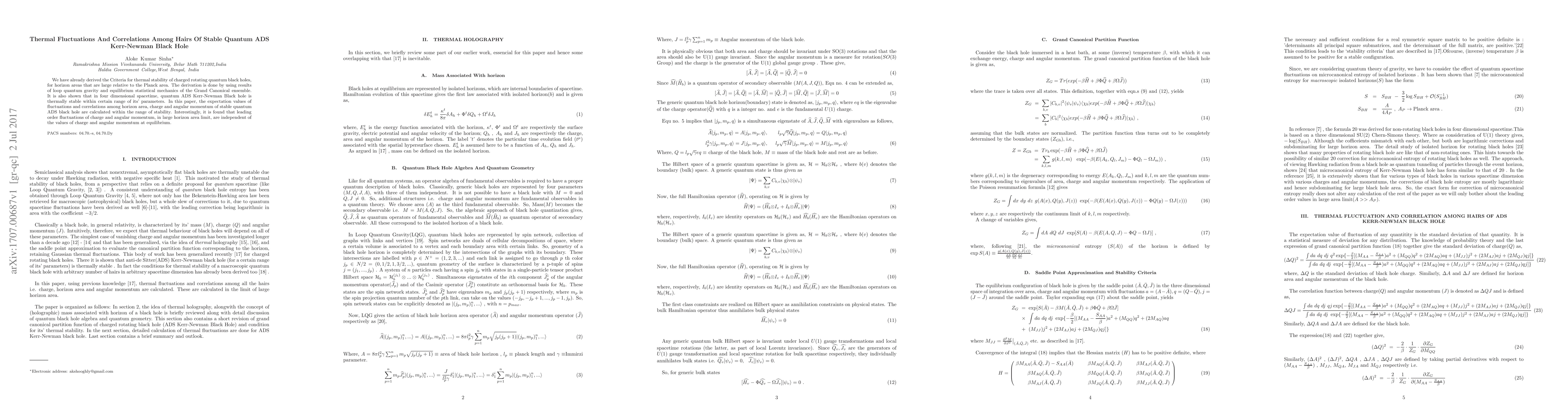 We have already derived the Criteria for thermal stability of charged rotating quantum black holes, for horizon areas that are large relative to the Planck area. The derivation is done by using results of loop quantum gravity and equilibrium statistical mechanics of the Grand Canonical ensemble. It is also shown that in four dimensional spacetime, quantum ADS Kerr-Newman Black hole is thermally stable within certain range of its' parameters. In this paper, the expectation values of fluctuations and correlations among horizon area, charge and angular momentum of stable quantum ADS black hole are calculated within the range of stability. Interestingly, it is found that leading order fluctuations of charge and angular momentum, in large horizon area limit, are independent of the values of charge and angular momentum at equilibrium.