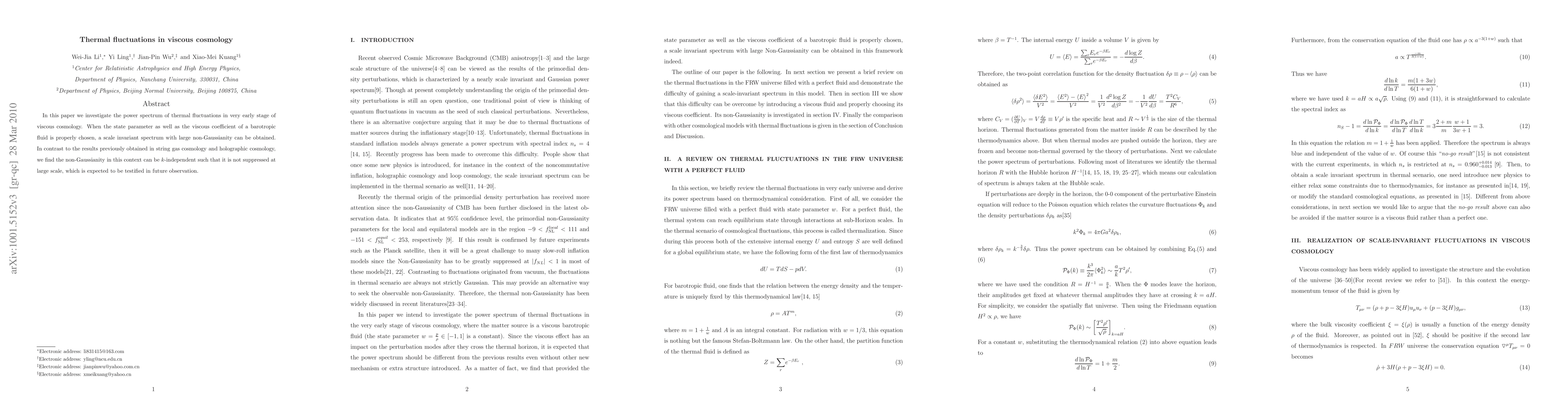This paper explores the power spectrum of thermal fluctuations in viscous cosmology, revealing that a scale-invariant spectrum with large, k-independent non-Gaussianity can emerge under specific conditions. This contrasts with previous findings in string and holographic cosmologies, suggesting a potential observational signature in future studies.