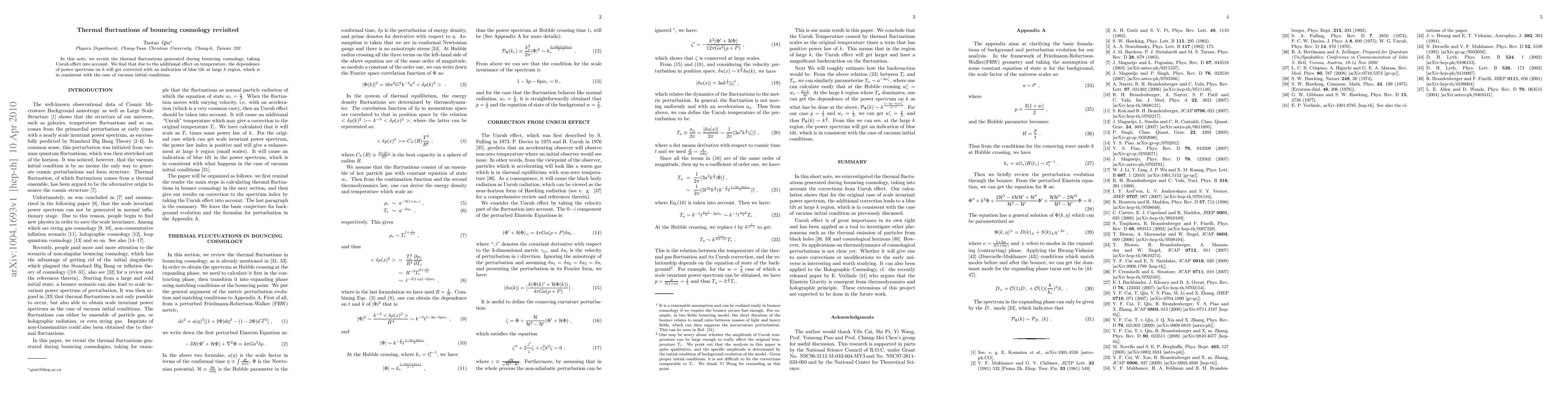 This paper revisits thermal fluctuations in bouncing cosmology, considering the Unruh effect, and finds that it corrects the power spectrum's dependence on $k$, resulting in a blue tilt at large $k$ values, aligning with vacuum initial conditions.