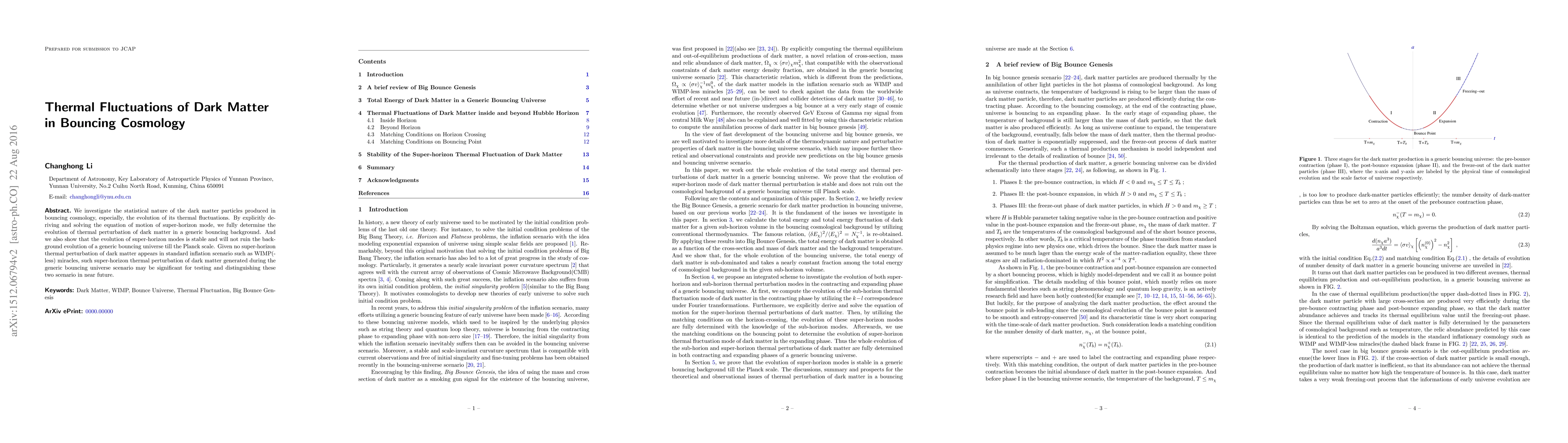 The paper presents an integrated scheme to investigate the evolution of both super-horizon and sub-horizon thermal perturbation modes in a generic bouncing universe, explicitly deriving and solving the equation of motion for super-horizon thermal perturbations of dark matter.