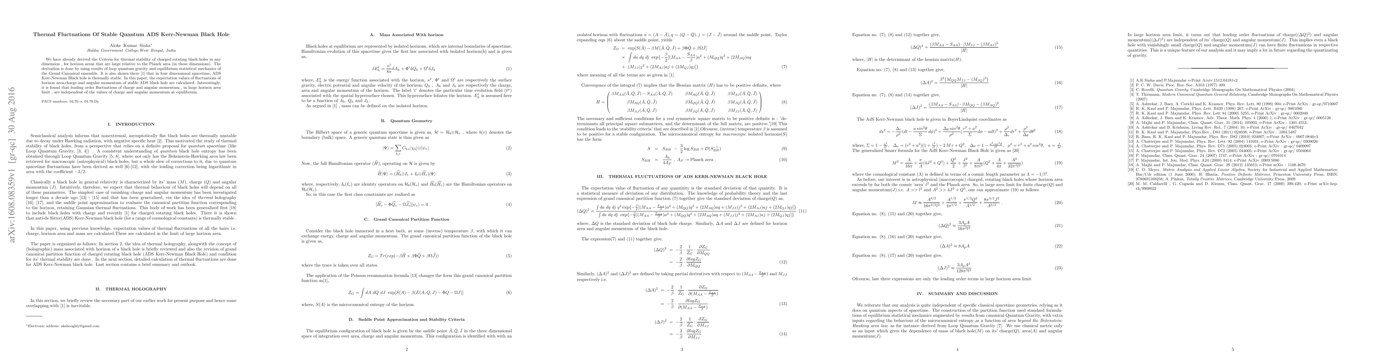 This paper derives criteria for thermal stability of charged rotating black holes using loop quantum gravity and statistical mechanics, showing that the ADS Kerr-Newman black hole is thermally stable. It calculates the expectation values of fluctuations in horizon area, charge, and angular momentum, finding that leading order fluctuations of charge and angular momentum are independent of their equilibrium values in large horizon areas.