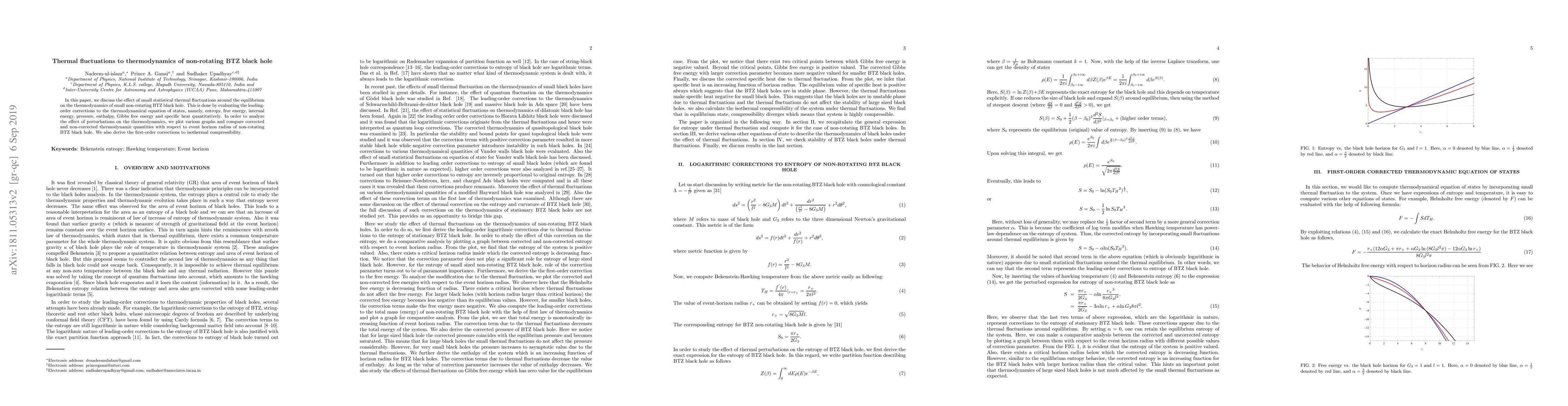 This research investigates the influence of thermal fluctuations on the thermodynamics of non-rotating BTZ black holes, providing leading-order corrections to key thermodynamic quantities like entropy and free energy. The study concludes with a detailed comparison of corrected versus non-corrected thermodynamic properties and derives first-order corrections to isothermal compressibility.