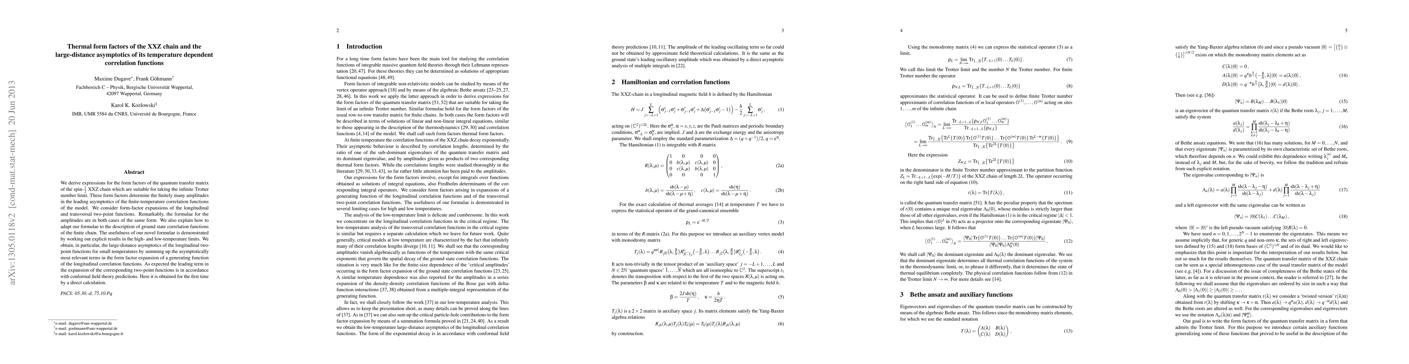 This paper derives expressions for the form factors of the quantum transfer matrix in the spin-1/2 XXZ chain, which determine the leading asymptotics of finite-temperature correlation functions. The study reveals that the formulae for these amplitudes are consistent across longitudinal and transverse two-point functions, and it provides explicit results for high and low temperatures, confirming conformal field theory predictions.