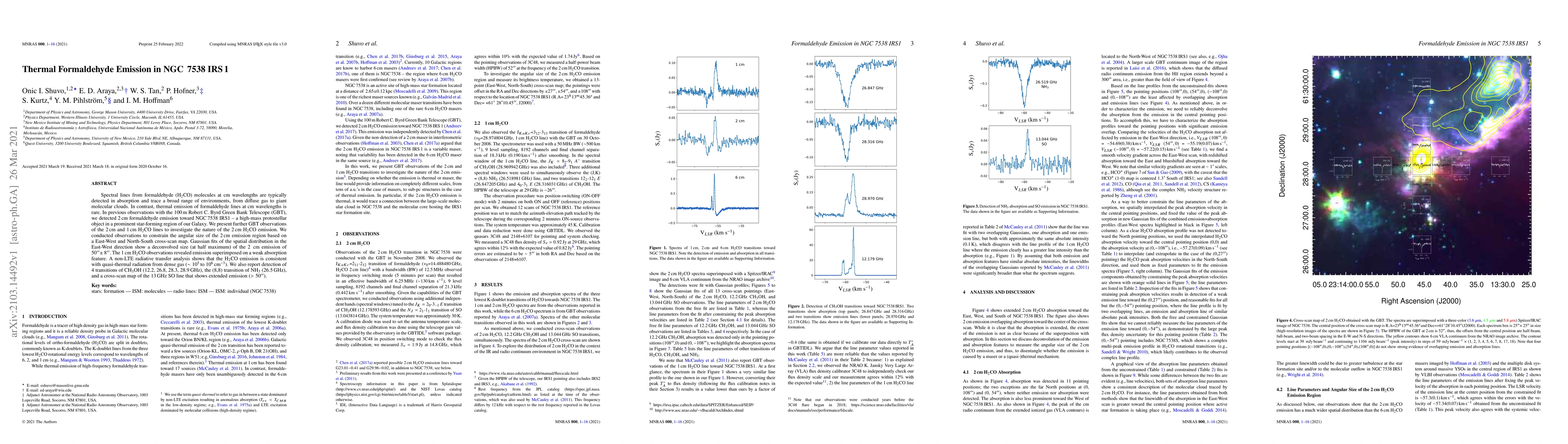 Researchers detected thermal formaldehyde emission toward NGC7538 IRS1, a high-mass protostellar object, using the GBT telescope, revealing quasi-thermal radiation from dense gas.
