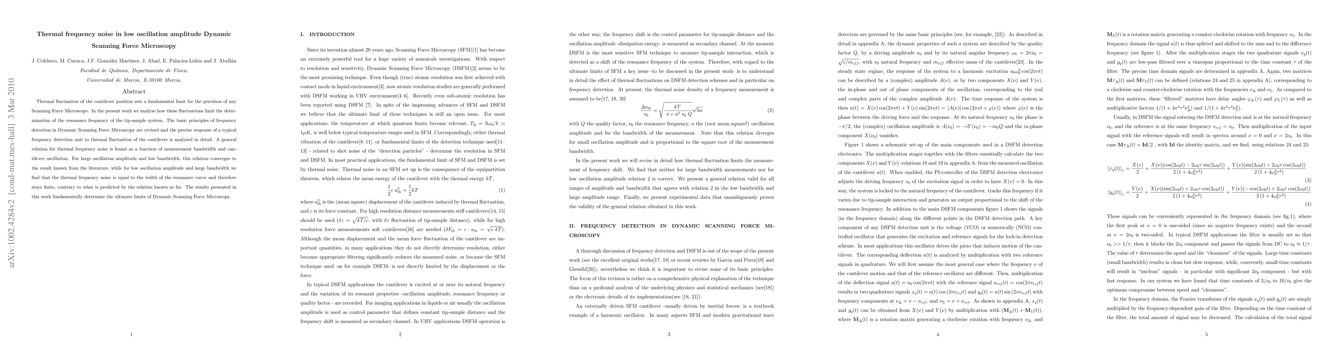 This paper analyzes how thermal fluctuations limit the precision of Dynamic Scanning Force Microscopy by examining the resonance frequency determination of the tip-sample system. It reveals a new general relation for thermal frequency noise, showing that for low oscillation amplitude and large measurement bandwidth, the noise remains finite contrary to previous predictions.