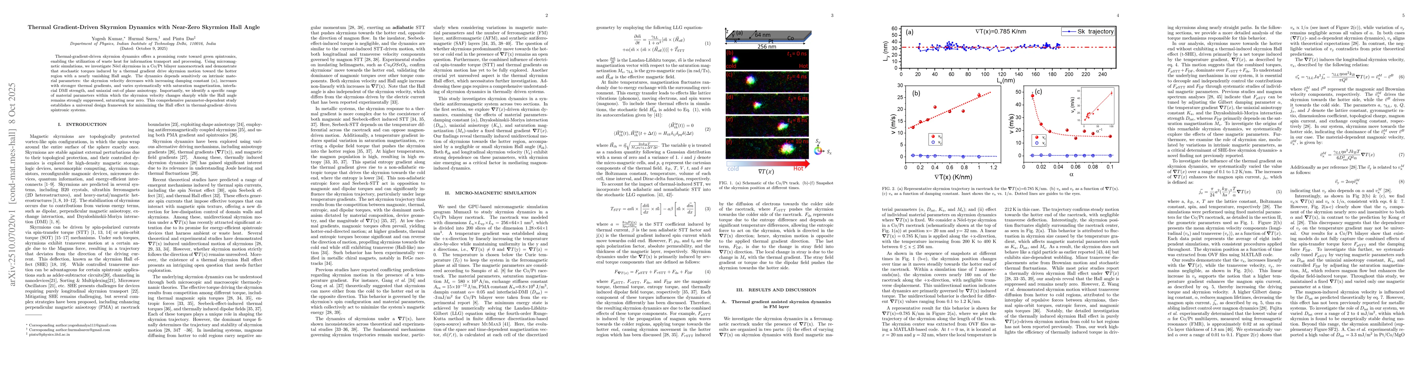 This study is novel in demonstrating that thermal gradients can be used to control skyrmion dynamics without the need for external magnetic fields, offering a new paradigm for low-power spintronic applications.