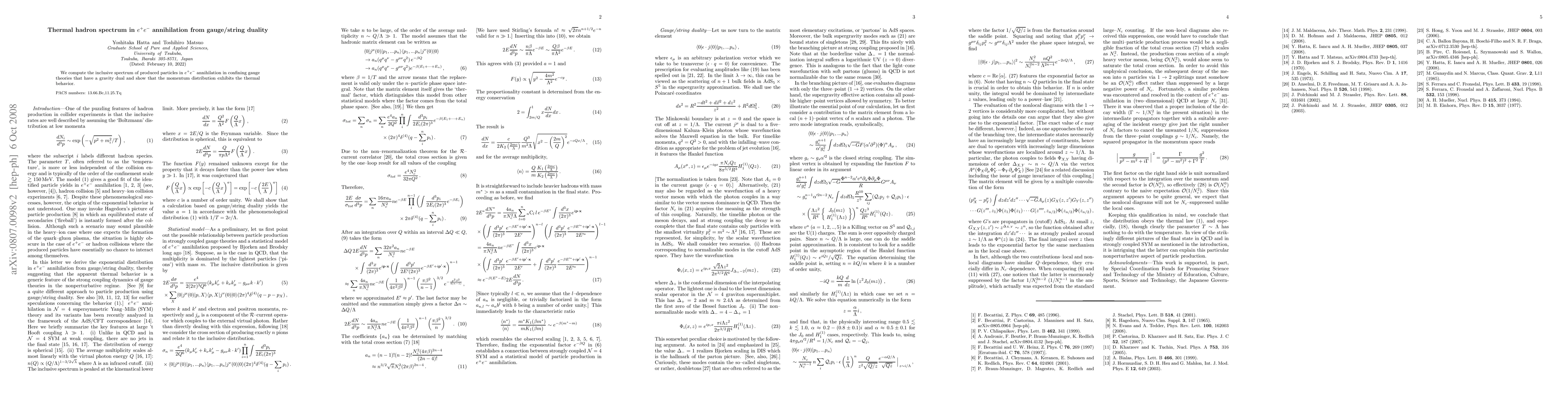 Researchers computed the inclusive spectrum of particles in e+e- annihilation in confining gauge theories with gravity duals, showing thermal behavior in momentum distribution.