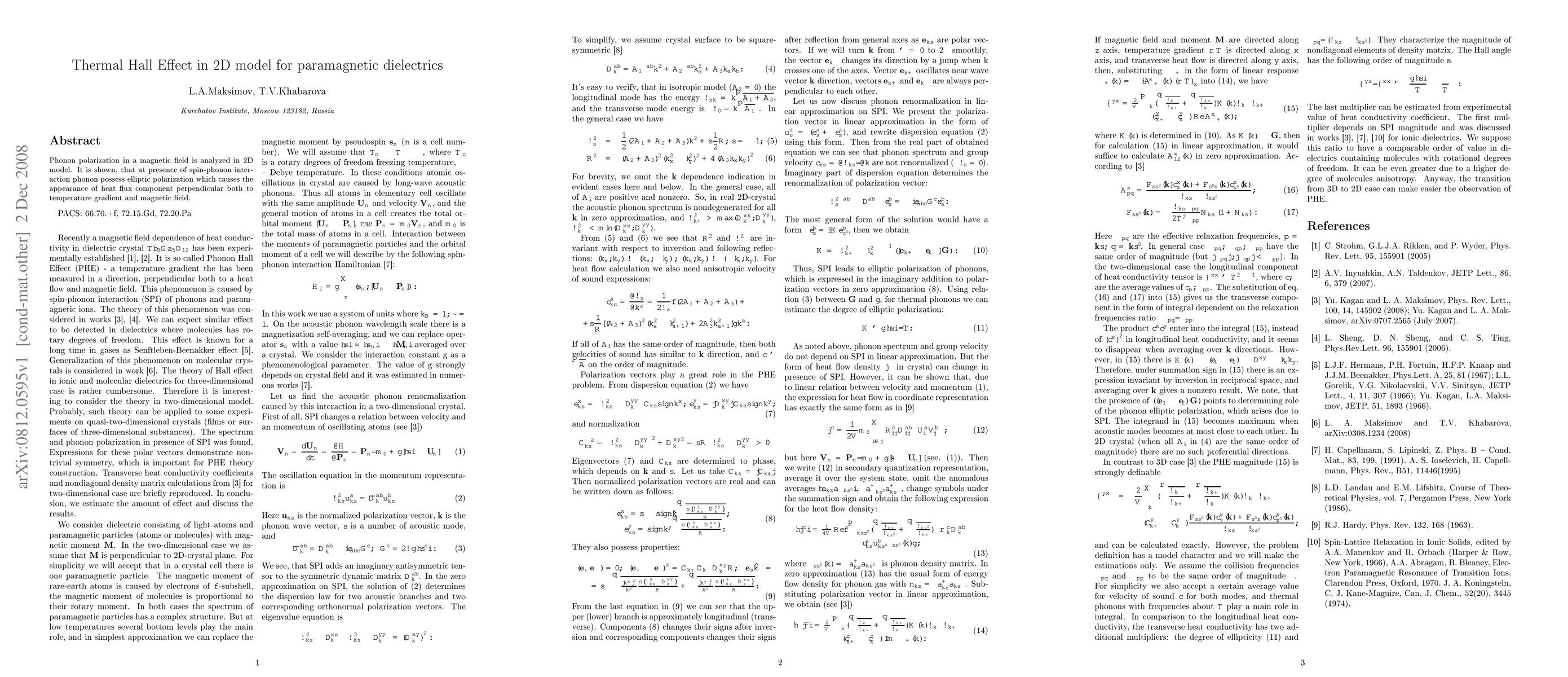 Researchers analyzed phonon polarization in magnetic fields using a 2D model and found that spin-phonon interactions cause heat to flow perpendicular to both temperature and magnetic field gradients. This discovery challenges traditional views of thermal Hall effect in paramagnetic materials.