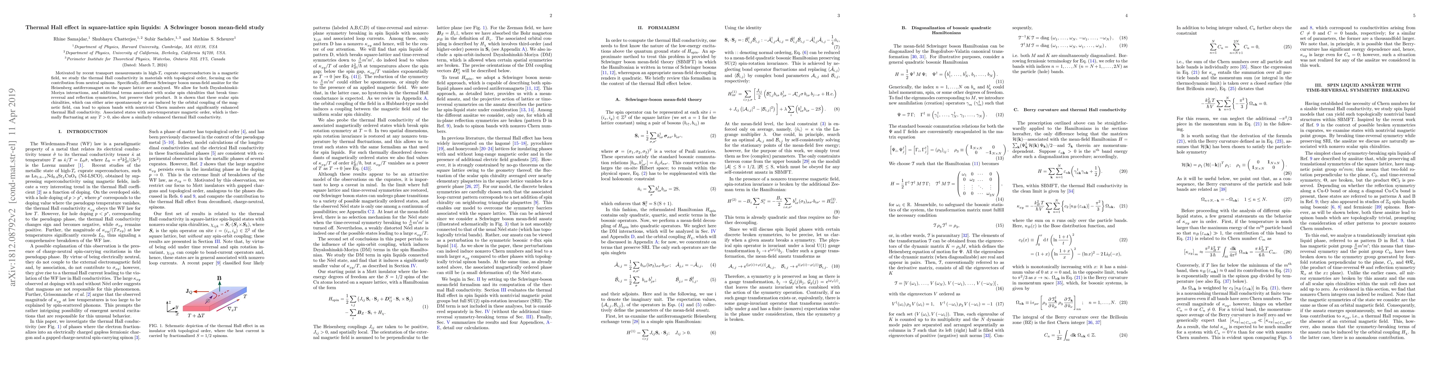 This paper investigates the thermal Hall effect in square-lattice spin liquids using Schwinger boson mean-field theory, focusing on the contribution from neutral spinons. It finds that scalar spin chiralities, which can be induced by magnetic fields or arise spontaneously, lead to enhanced thermal Hall conductivity due to nontrivial spinon bands.