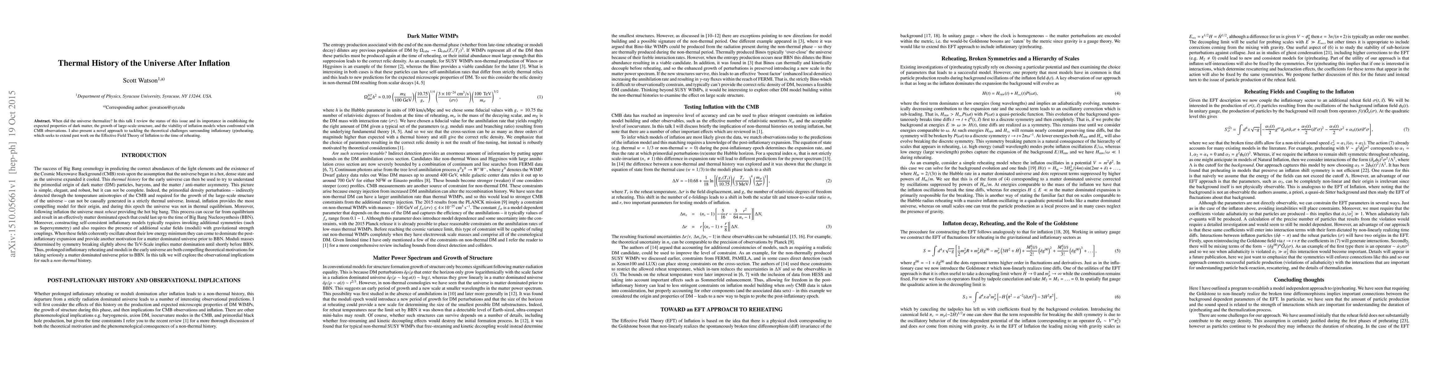 When did the universe thermalize? In this talk I review the status of this issue and its importance in establishing the expected properties of dark matter, the growth of large-scale structure, and the viability of inflation models when confronted with CMB observations. I also present a novel approach to tackling the theoretical challenges surrounding inflationary (p)reheating, which seeks to extend past work on the Effective Field Theory of Inflation to the time of reheating.