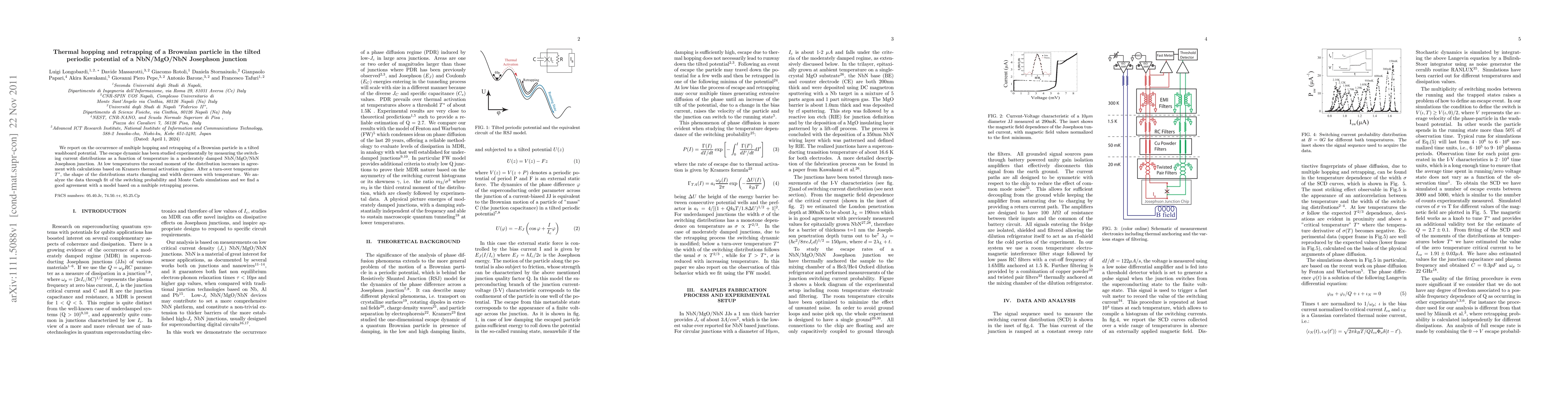 This research investigates the thermal hopping and retrapping dynamics of a Brownian particle in a tilted periodic potential within a NbN/MgO/NbN Josephson junction. Experimental measurements show that the particle's escape behavior follows a Kramers-like thermal activation regime at low temperatures, transitioning to a multiple retrapping process above a critical temperature T*.