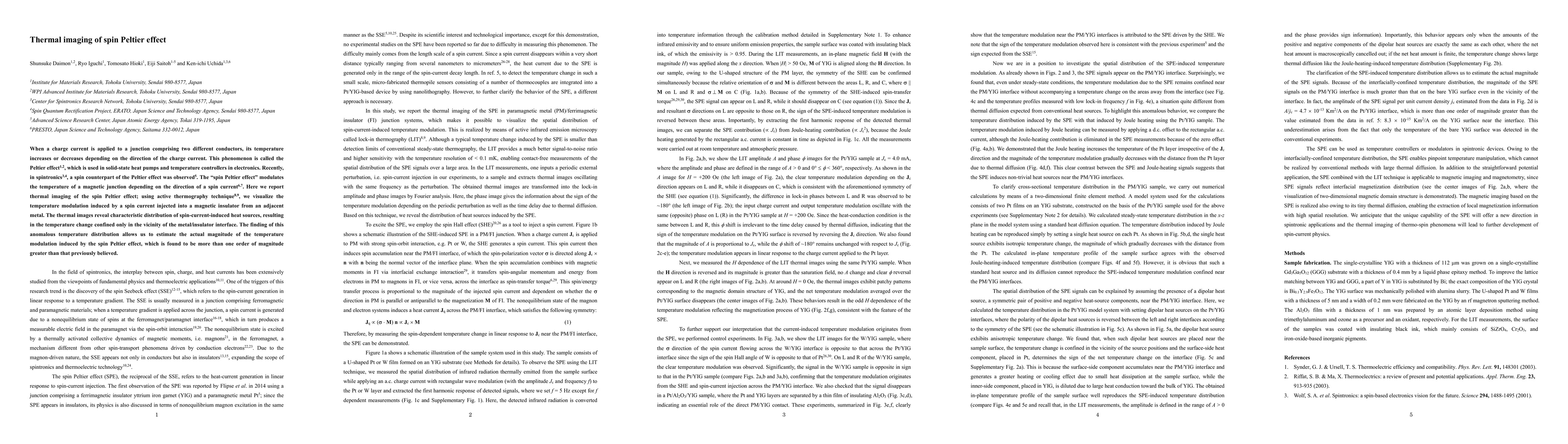 This paper investigates the thermal imaging of the spin Peltier effect using active thermography, revealing significant temperature modulation near the metal/insulator interface when a spin current is applied. The study finds that the temperature change is over an order of magnitude greater than previously believed.