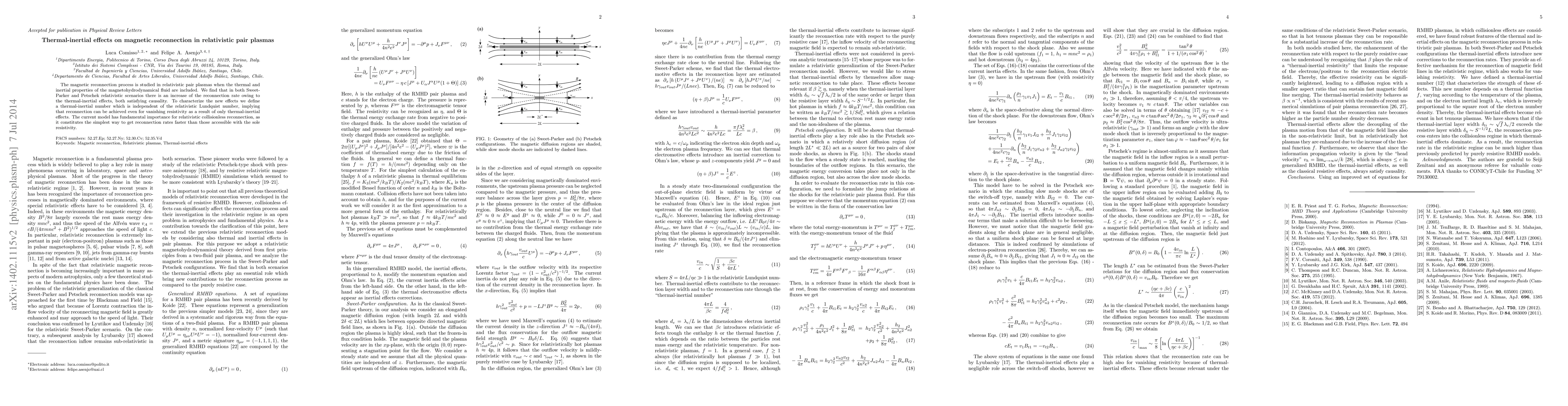 This paper investigates the impact of thermal and inertial properties on magnetic reconnection in relativistic pair plasmas, finding an increased reconnection rate due to these effects. A new thermal-inertial number is introduced, demonstrating reconnection can occur even without resistivity, highlighting its fundamental role in relativistic collisionless reconnection.