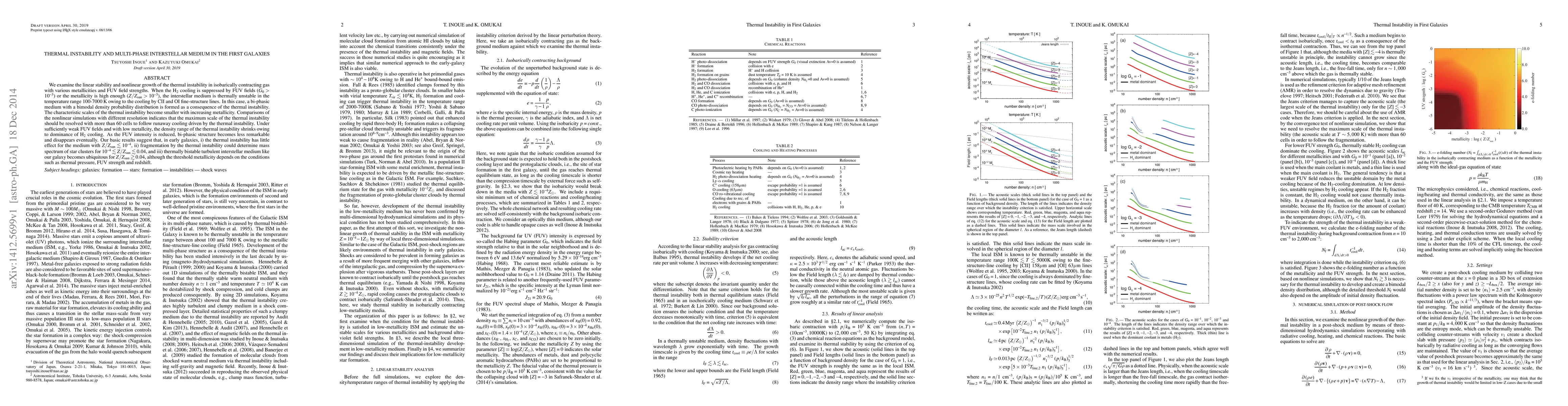 basic results suggest that, in early galaxies, i) the thermal instability has