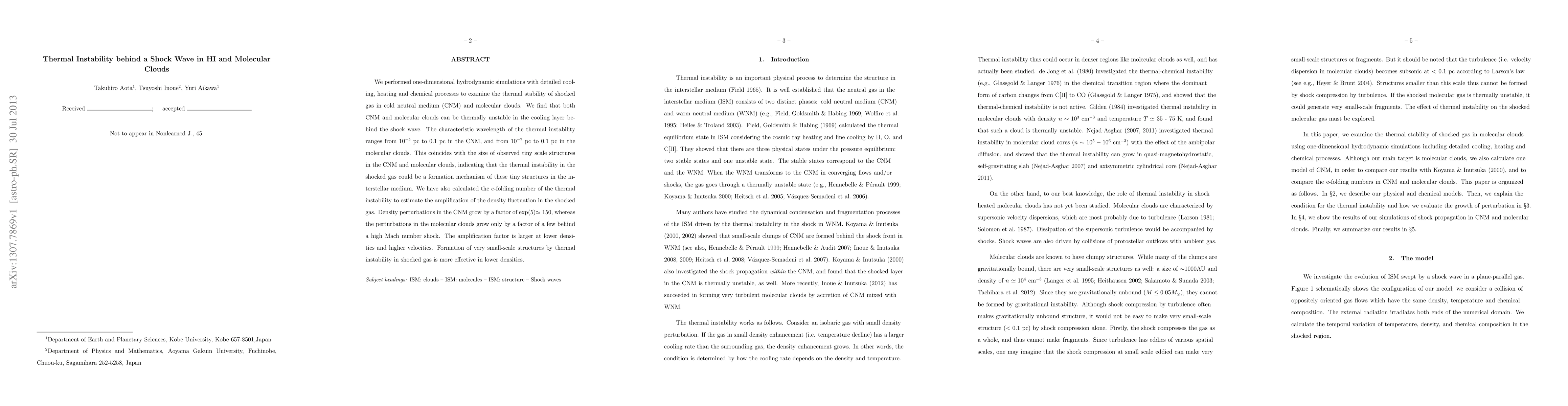 This study uses hydrodynamic simulations to explore thermal instability in shocked gas behind shock waves in cold neutral medium (CNM) and molecular clouds, finding that both environments exhibit instability that can form tiny scale structures. The amplification of density perturbations is significantly higher in CNM than in molecular clouds, suggesting more effective formation of small-scale structures in lower-density regions.
