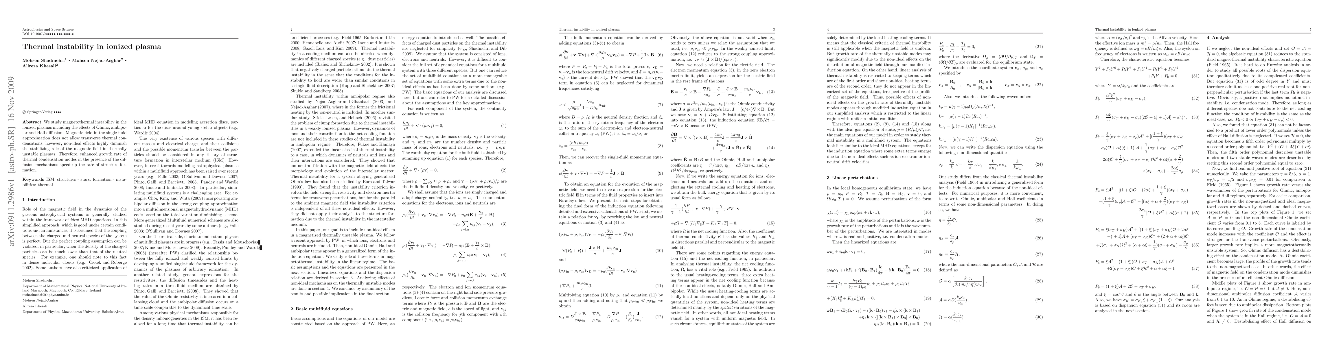 This paper investigates magnetothermal instability in ionized plasmas, focusing on the effects of Ohmic, ambipolar, and Hall diffusion. It reveals that non-ideal effects weaken the magnetic field's stabilizing role, leading to an increased growth rate of thermal condensation modes and accelerated structure formation.