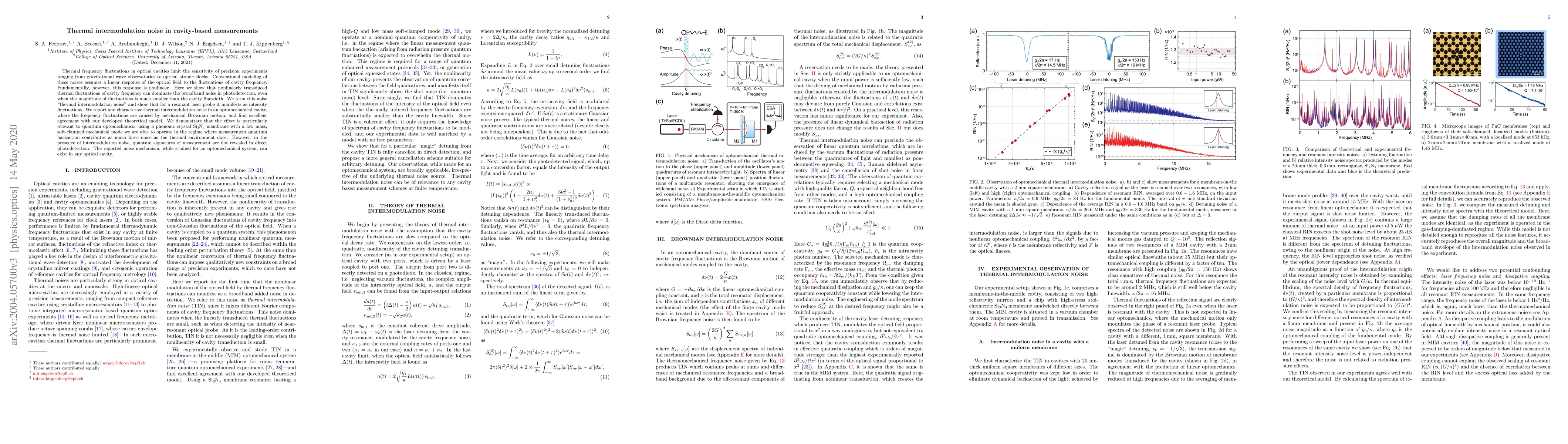 This paper investigates thermal intermodulation noise in optical cavities, demonstrating that nonlinear transduction of thermal frequency fluctuations can dominate broadband noise in photodetection. The study finds that this noise, termed "thermal intermodulation noise," obscures quantum measurement signatures in optomechanical systems, highlighting its relevance to quantum optomechanics.