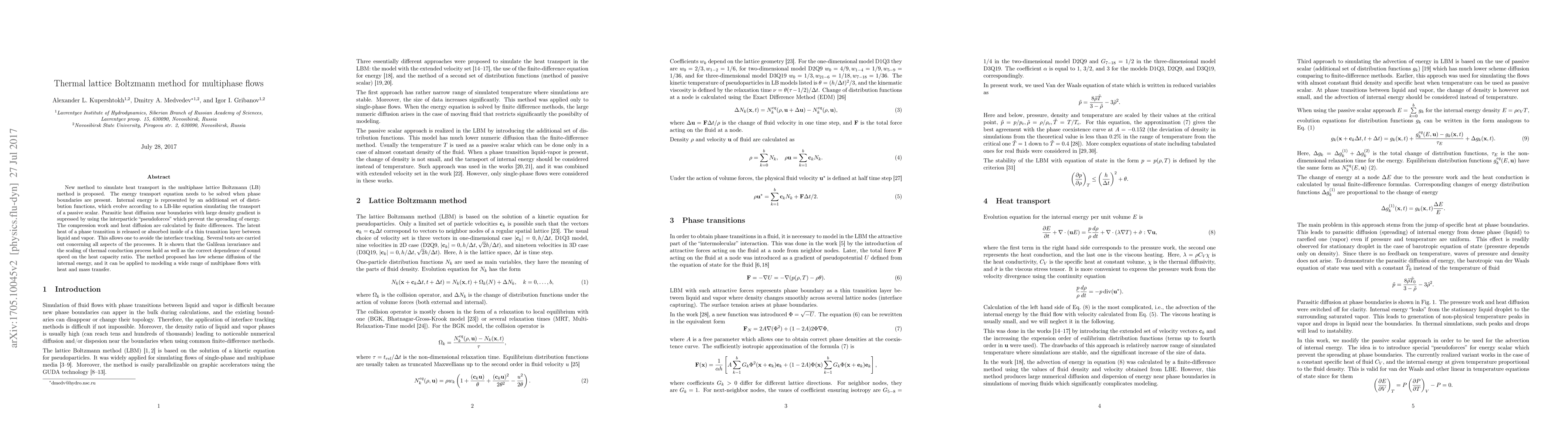 The paper proposes a thermal lattice Boltzmann method for simulating heat transport in multiphase flows, utilizing additional distribution functions to represent internal energy and pseudoforces to suppress parasitic heat diffusion. This method allows for modeling multiphase flows with heat and mass transfer without explicit interface tracking.