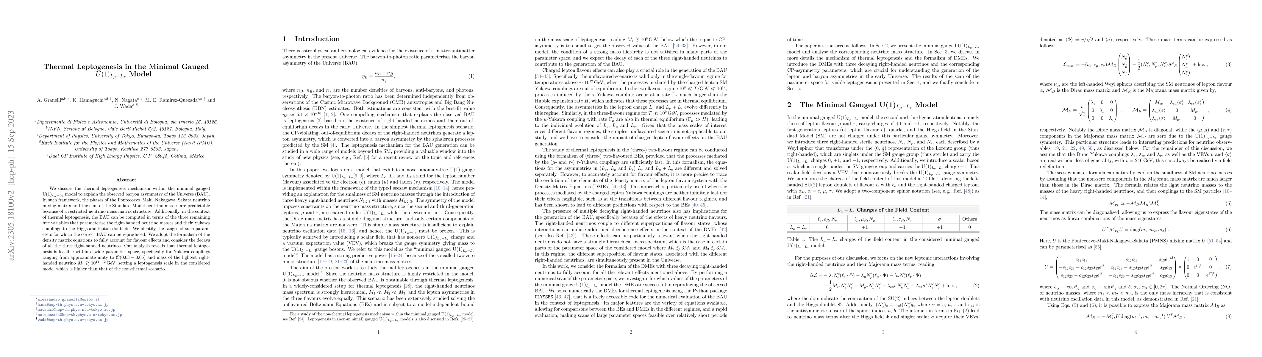 This paper explores thermal leptogenesis within the minimal gauged $U(1)_{L_\mu-L_\tau}$ model to explain the observed baryon asymmetry, finding feasible parameter ranges for right-handed neutrino masses and Yukawa couplings that reproduce the asymmetry. The analysis uses density matrix formalism to account for flavor effects.