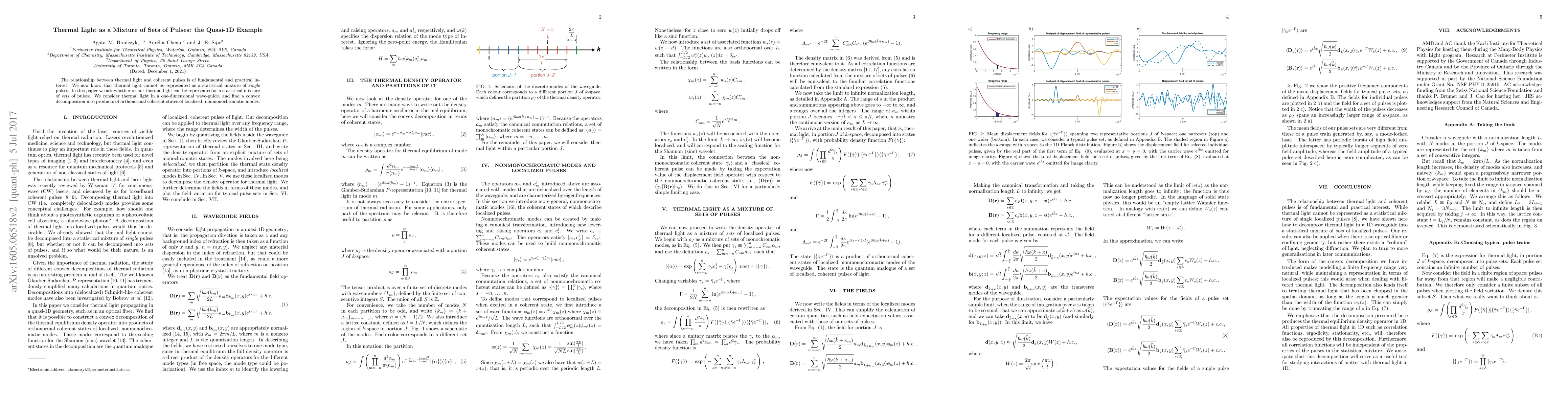 The relationship between thermal light and coherent pulses is of fundamental and practical interest. We now know that thermal light cannot be represented as a statistical mixture of single pulses. In this paper we ask whether or not thermal light can be represented as a statistical mixture of sets of pulses. We consider thermal light in a one-dimensional wave-guide, and find a convex decomposition into products of orthonormal coherent states of localized, nonmonochromatic modes.