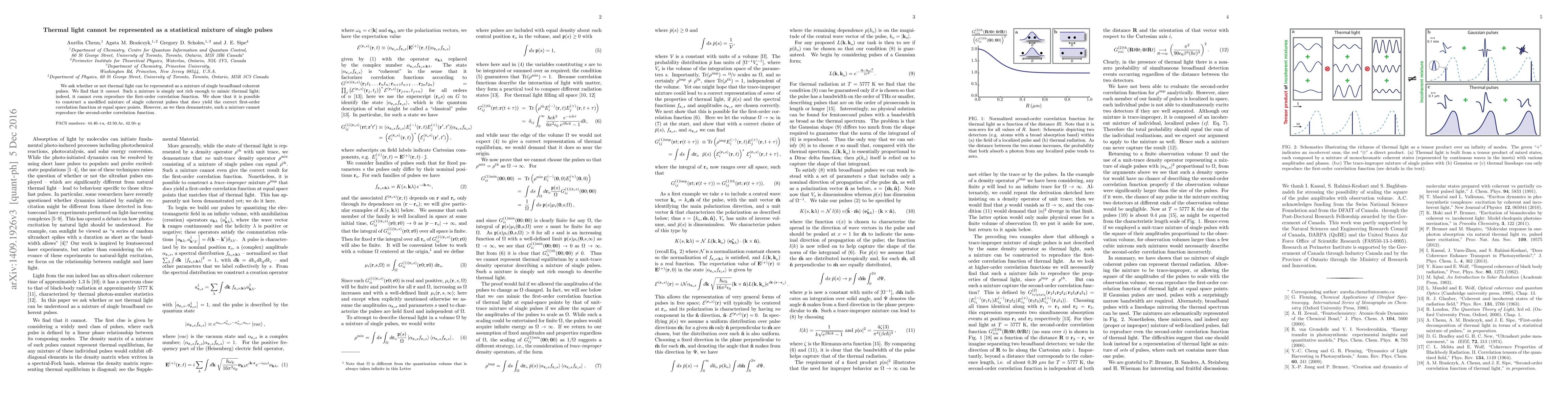 This paper concludes that thermal light cannot be represented as a statistical mixture of single broadband coherent pulses, as such mixtures lack the necessary complexity to replicate thermal light's first-order correlation function. While a modified mixture can match the first-order correlation, it fails to reproduce the second-order correlation function.
