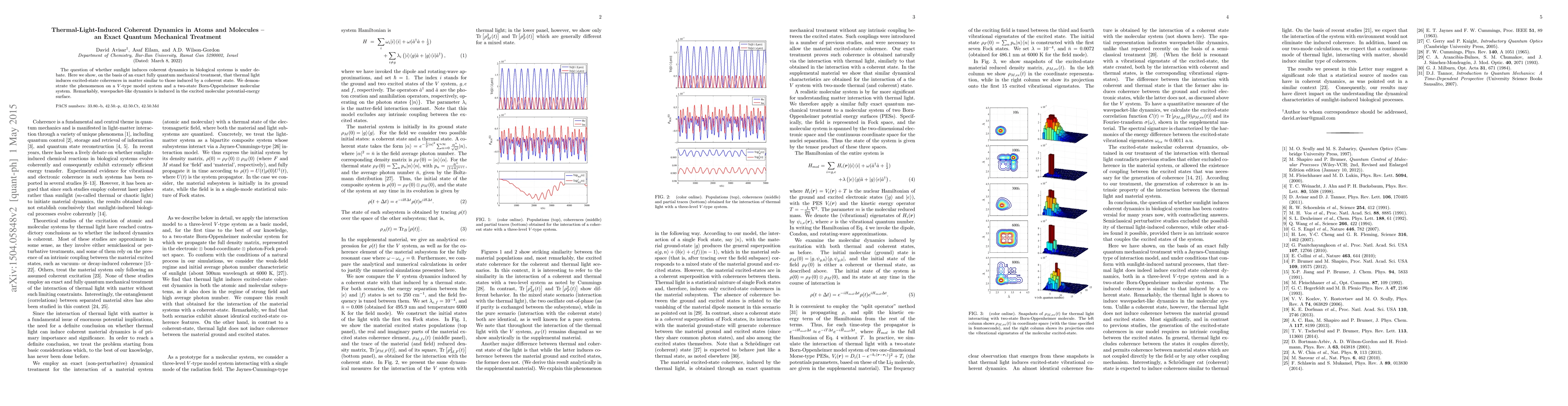 The question of whether sunlight induces coherent dynamics in biological systems is under debate. Here we show, on the basis of an exact fully quantum mechanical treatment, that thermal light induces excited-state coherences in matter similar to those induced by a coherent state. We demonstrate the phenomenon on a V-type model system and a two-state Born-Oppenheimer molecular system. Remarkably, wavepacket-like dynamics is induced in the excited molecular potential-energy surface.