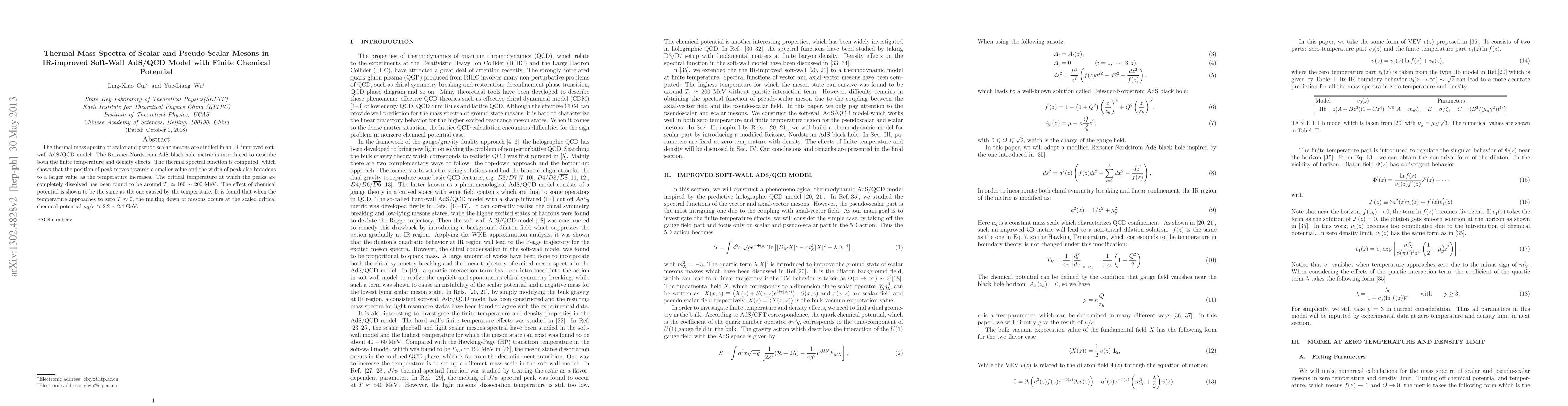 This paper investigates the thermal mass spectra of scalar and pseudo-scalar mesons using an IR-improved soft-wall AdS/QCD model, incorporating the effects of both temperature and finite chemical potential. The study finds that meson peaks shift and broaden with increasing temperature, dissolving completely around $T_{c}\simeq 160\sim 200\MeV$, and similarly melt at $\mu_0/\kappa\approx 2.2\sim 2.4 \GeV$ when temperature approaches zero.