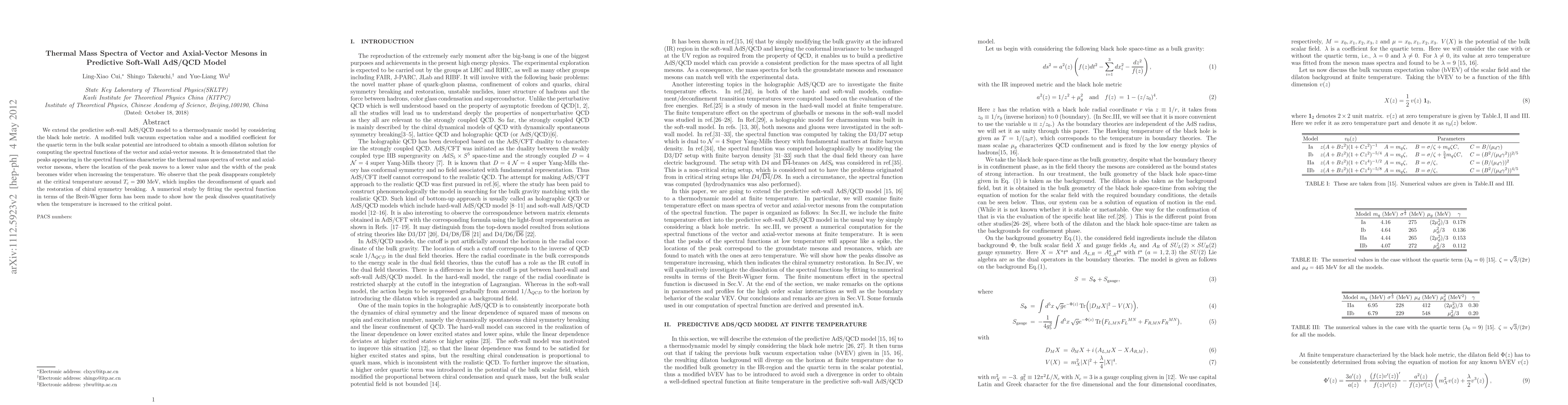 We extend the predictive soft-wall AdS/QCD model to a thermodynamic model by considering the black hole metric. A modified bulk vacuum expectation value and a modified coefficient for the quartic term in the bulk scalar potential are introduced to obtain a smooth dilaton solution for computing the spectral functions of the vector and axial-vector mesons. It is demonstrated that the peaks appearing in the spectral functions characterize the thermal mass spectra of vector and axial-vector mesons, where the location of the peak moves to a lower value and the width of the peak becomes wider when increasing the temperature. We observe that the peak disappears completely at the critical temperature around $T_c=200$ MeV, which implies the deconfinement of quark and the restoration of chiral symmetry breaking. A numerical study by fitting the spectral function in terms of the Breit-Wigner form has been made to show how the peak dissolves quantitatively when the temperature is increased to the critical point.