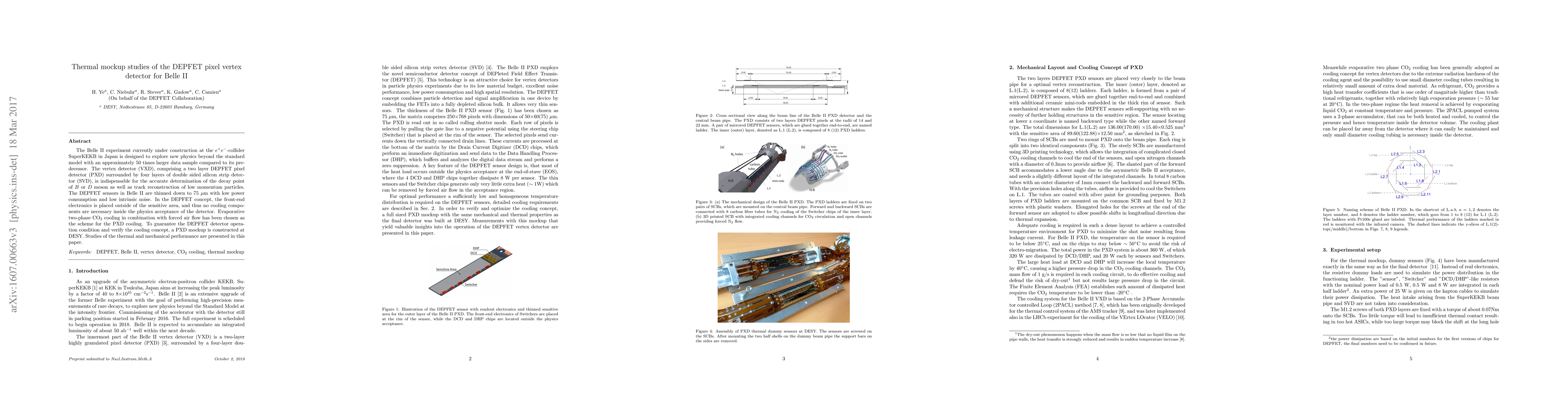 The Belle II experiment currently under construction at the $e^+e^-$-collider SuperKEKB in Japan is designed to explore new physics beyond the standard model with an approximately 50 times larger data sample compared to its predecessor. The vertex detector (VXD), comprising a two layer DEPFET pixel detector (PXD) surrounded by four layers of double sided silicon strip detector (SVD), is indispensable for the accurate determination of the decay point of $B$ or $D$ meson as well as track reconstruction of low momentum particles. The DEPFET sensors in Belle II are thinned down to 75 $\mu$m with low power consumption and low intrinsic noise. In the DEPFET concept, the front-end electronics is placed outside of the sensitive area, and thus no cooling components are necessary inside the physics acceptance of the detector. Evaporative two-phase CO$_2$ cooling in combination with forced air flow has been chosen as the scheme for the PXD cooling. To guarantee the DEPFET detector operation condition and verify the cooling concept, a PXD mockup is constructed at DESY. Studies of the thermal and mechanical performance are presented in this paper.