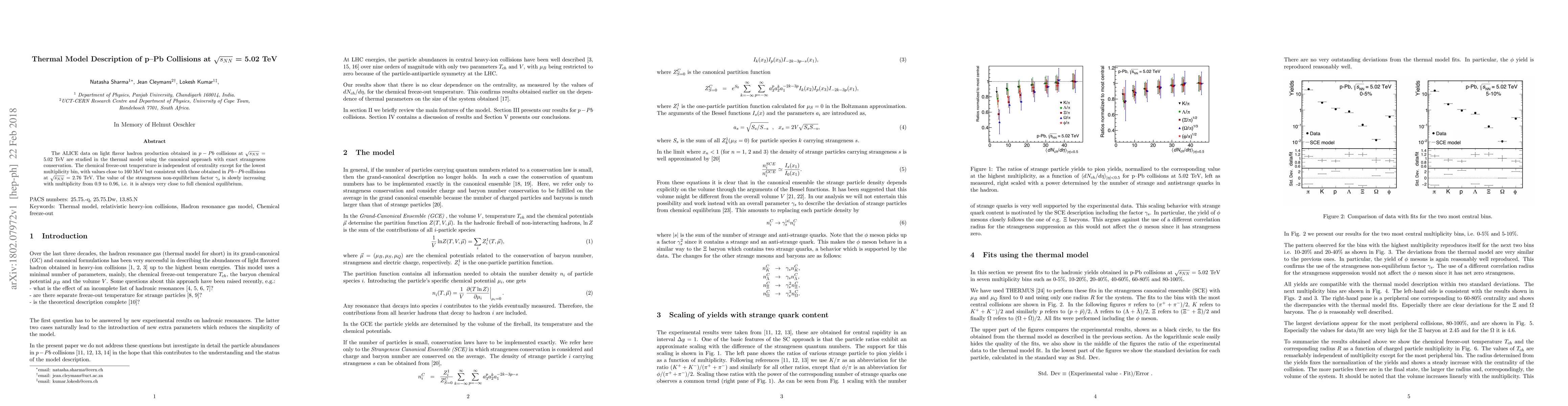 The research uses the thermal model with the canonical approach and exact strangeness conservation to analyze ALICE data on light flavor hadron production in $p-Pb$ collisions at $\sqrt{s_{NN}} $ = 5.02 TeV.