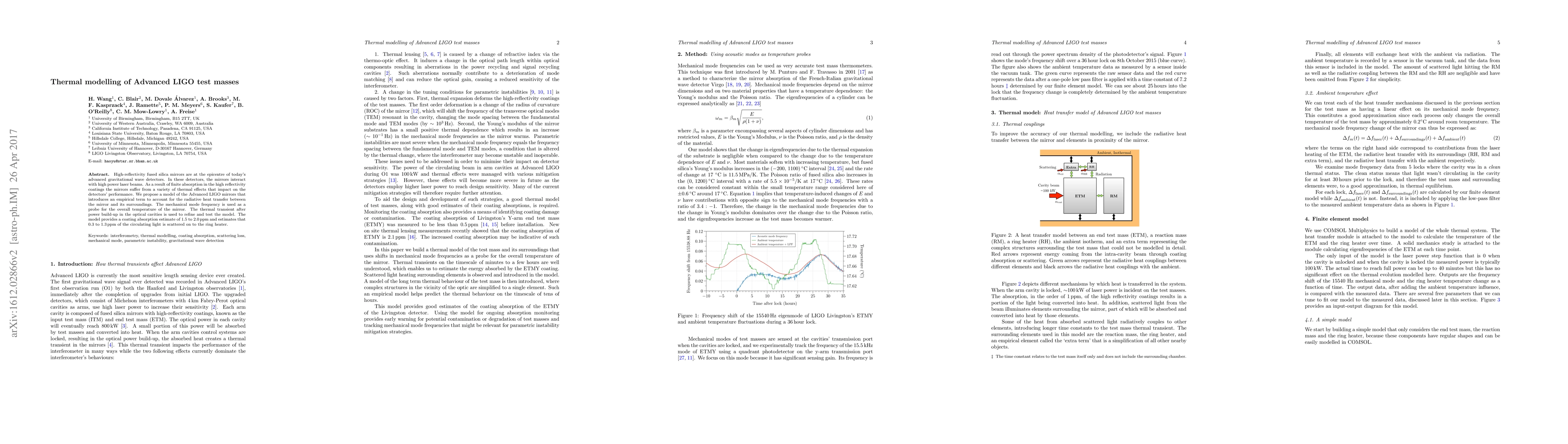 Researchers developed a thermal modeling framework for Advanced LIGO mirrors, accounting for radiative heat transfer and estimating coating absorption rates of 1.5-2.0 ppm and scattered light loss of 0.3-1.3 ppm.