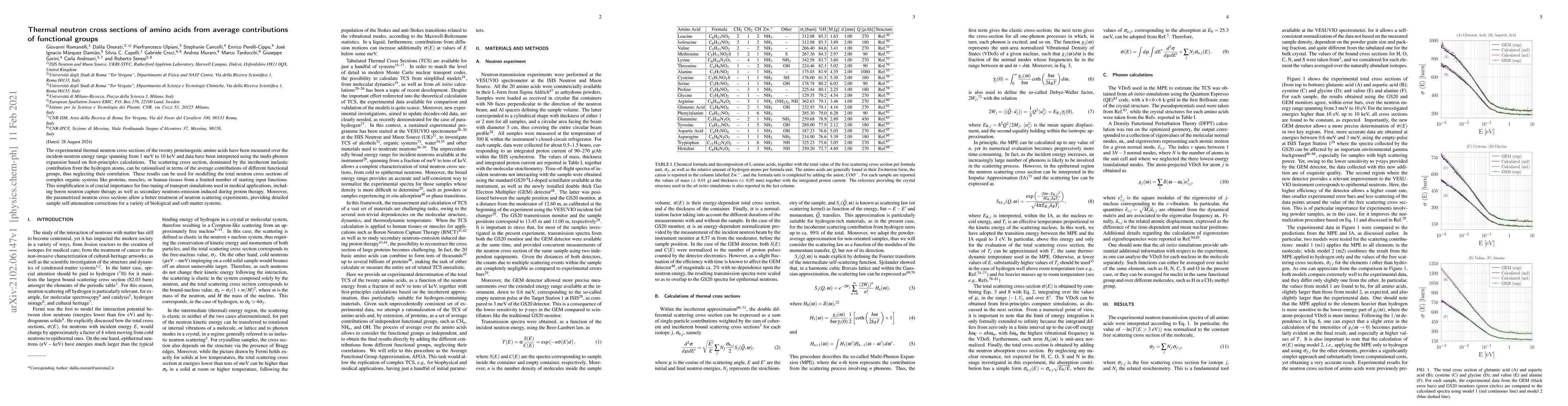 The experimental thermal neutron cross sections of the twenty proteinogenic amino acids have been measured over the incident-neutron energy range spanning from 1 meV to 10 keV and data have been interpreted using the multi-phonon expansion based on first-principles calculations. The scattering cross section, dominated by the incoherent inelastic contribution from the hydrogen atoms, can be rationalised in terms of the average contributions of different functional groups, thus neglecting their correlation. These results can be used for modelling the total neutron cross sections of complex organic systems like proteins, muscles, or human tissues from a limited number of starting input functions. This simplification is of crucial importance for fine-tuning of transport simulations used in medical applications, including boron neutron capture therapy as well as secondary neutrons-emission induced during proton therapy. Moreover, the parametrized neutron cross sections allow a better treatment of neutron scattering experiments, providing detailed sample self-attenuation corrections for a variety of biological and soft-matter systems.