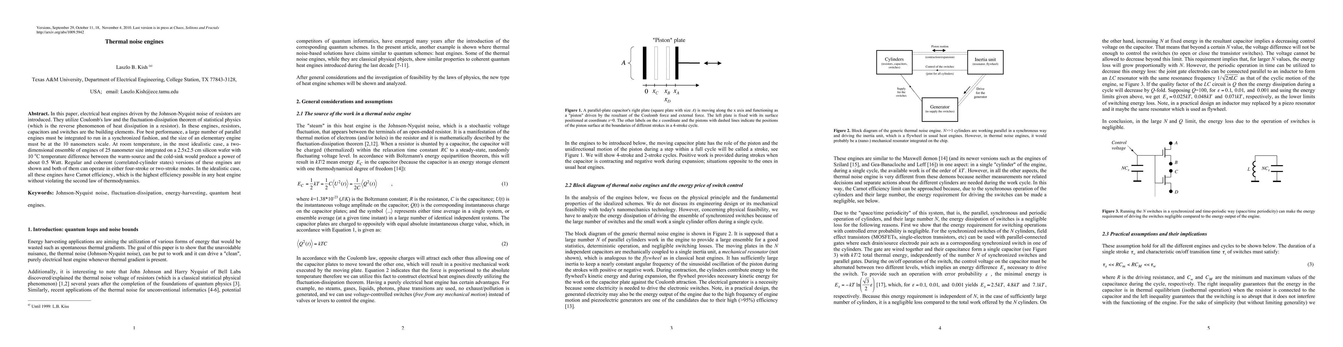 This paper introduces electrical heat engines powered by Johnson-Nyquist noise in resistors, utilizing Coulomb's law and the fluctuation-dissipation theorem. These engines operate without traditional components like pistons or exhaust, relying instead on resistors, capacitors, and switches at the nanoscale.