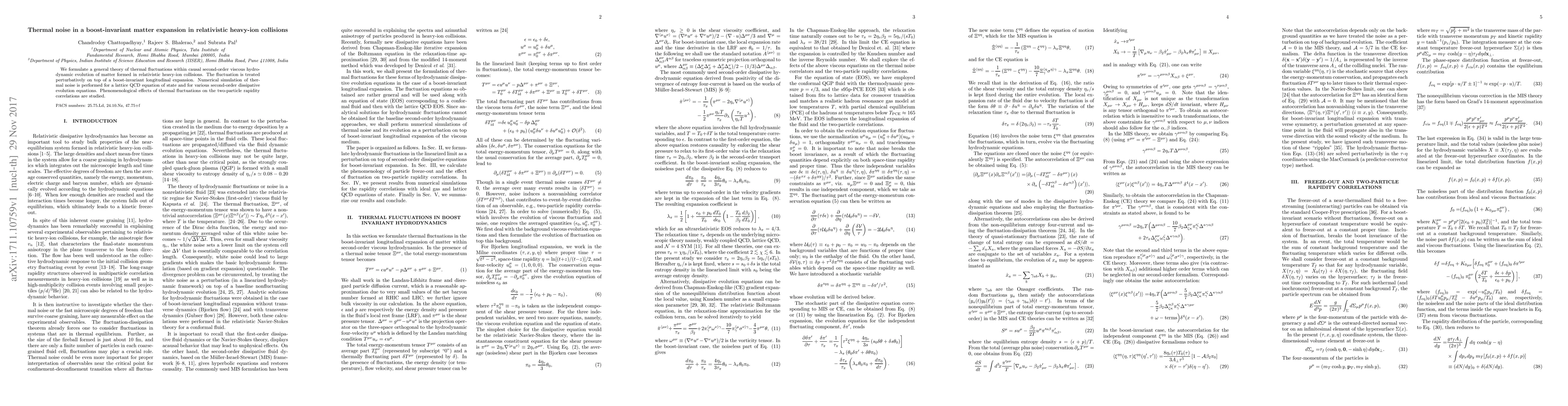 This paper develops a theory for thermal fluctuations in relativistic heavy-ion collisions during boost-invariant matter expansion, simulating these fluctuations numerically and examining their impact on two-particle rapidity correlations. The study uses lattice QCD for the equation of state and various second-order viscous hydrodynamic models.